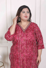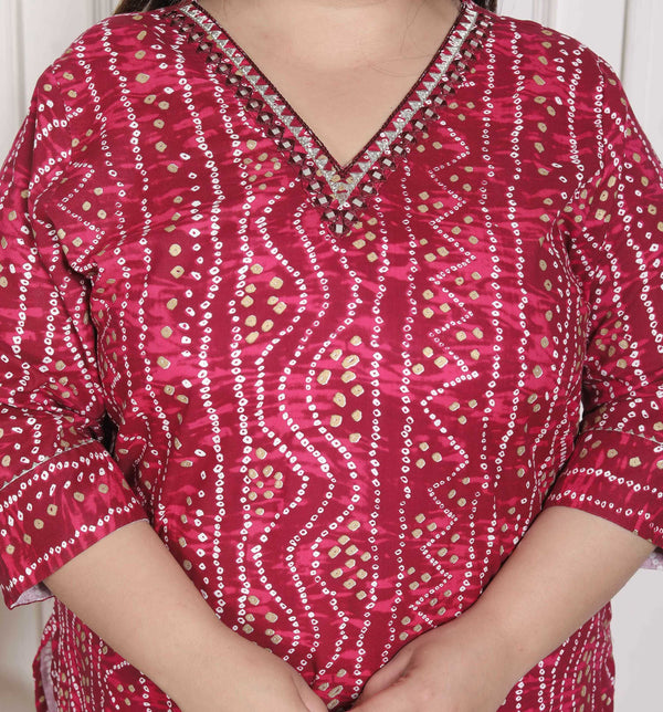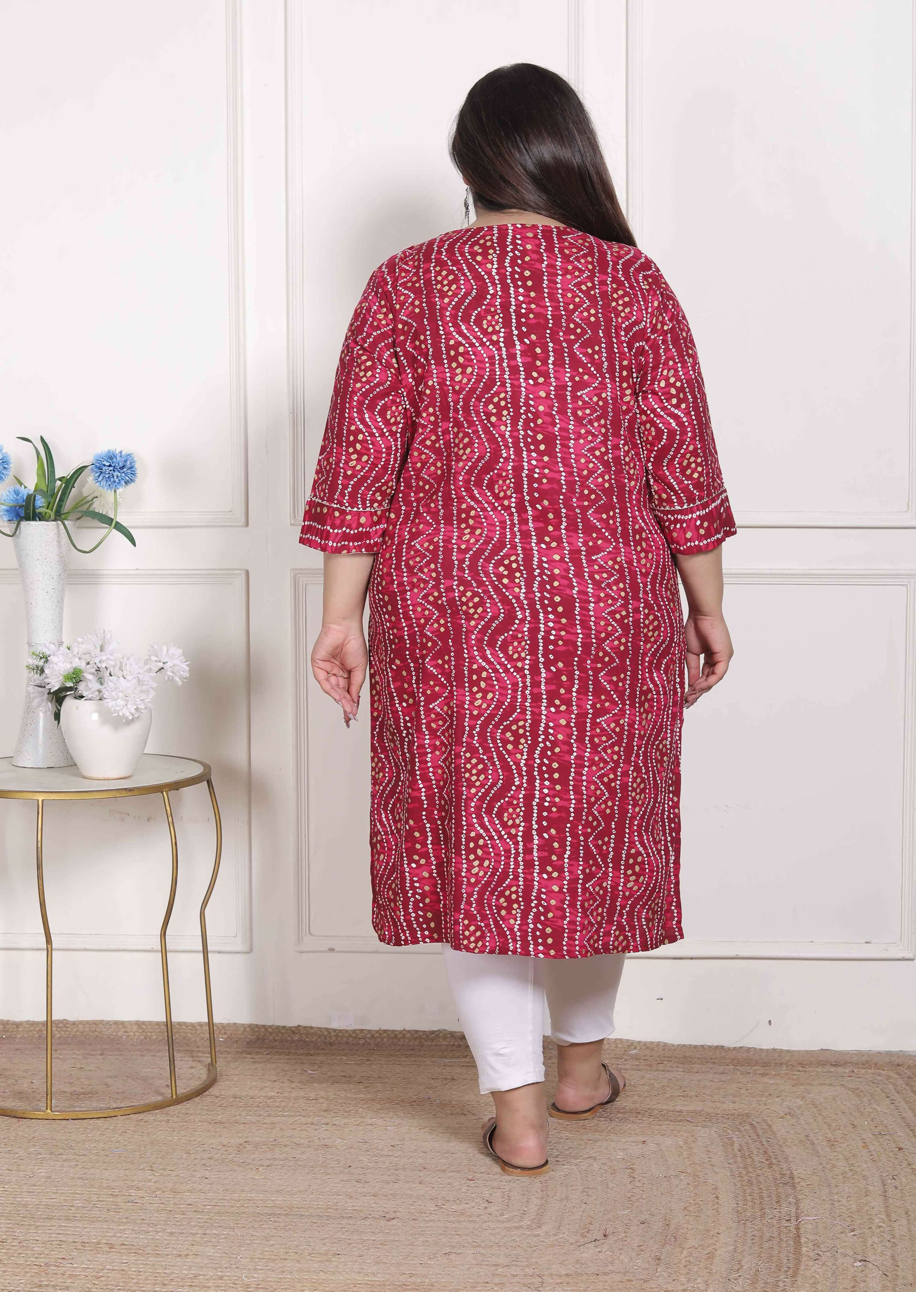 Miravan Women's Plus Size Bandhej Printed Rayon Kurta Magenta