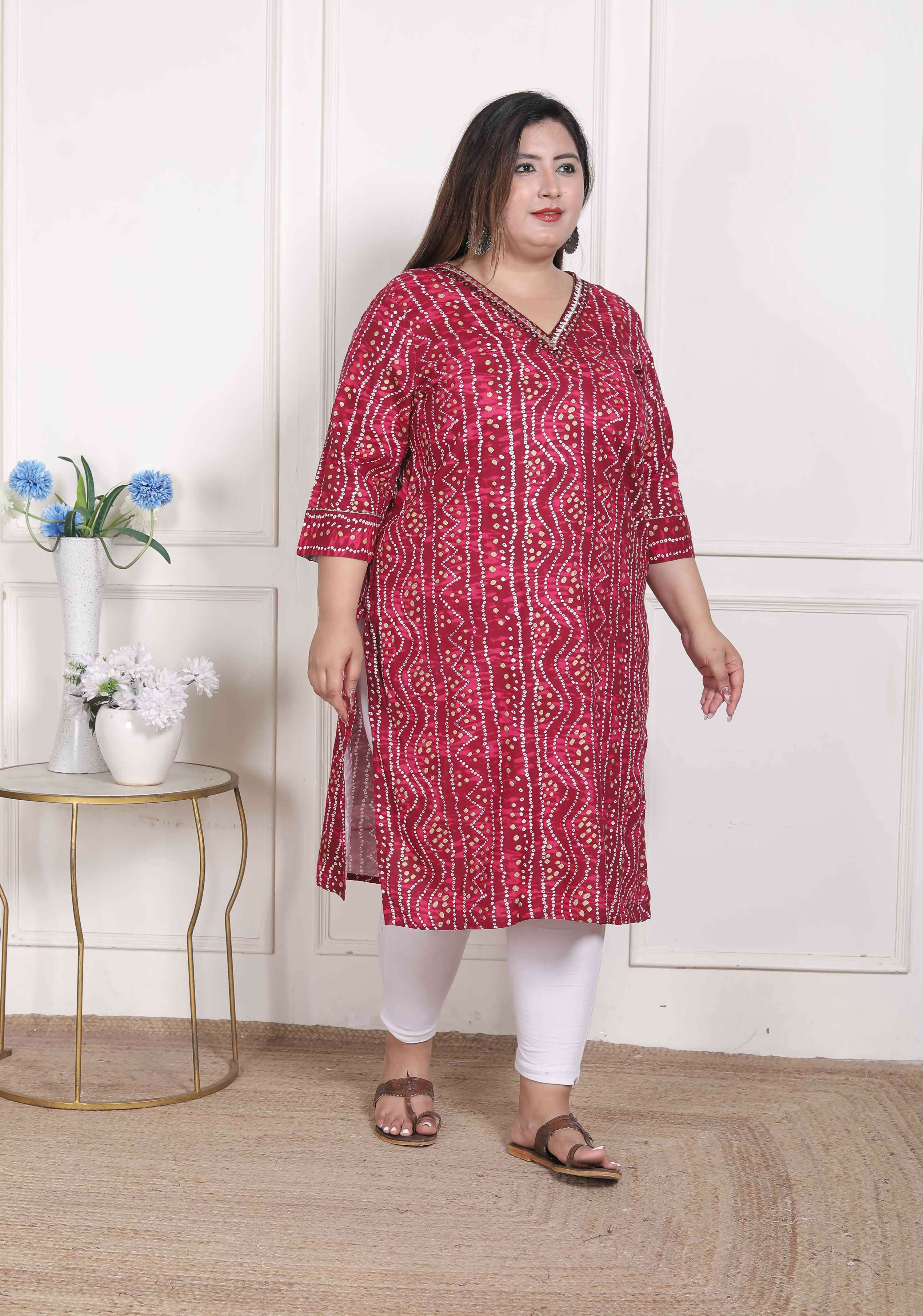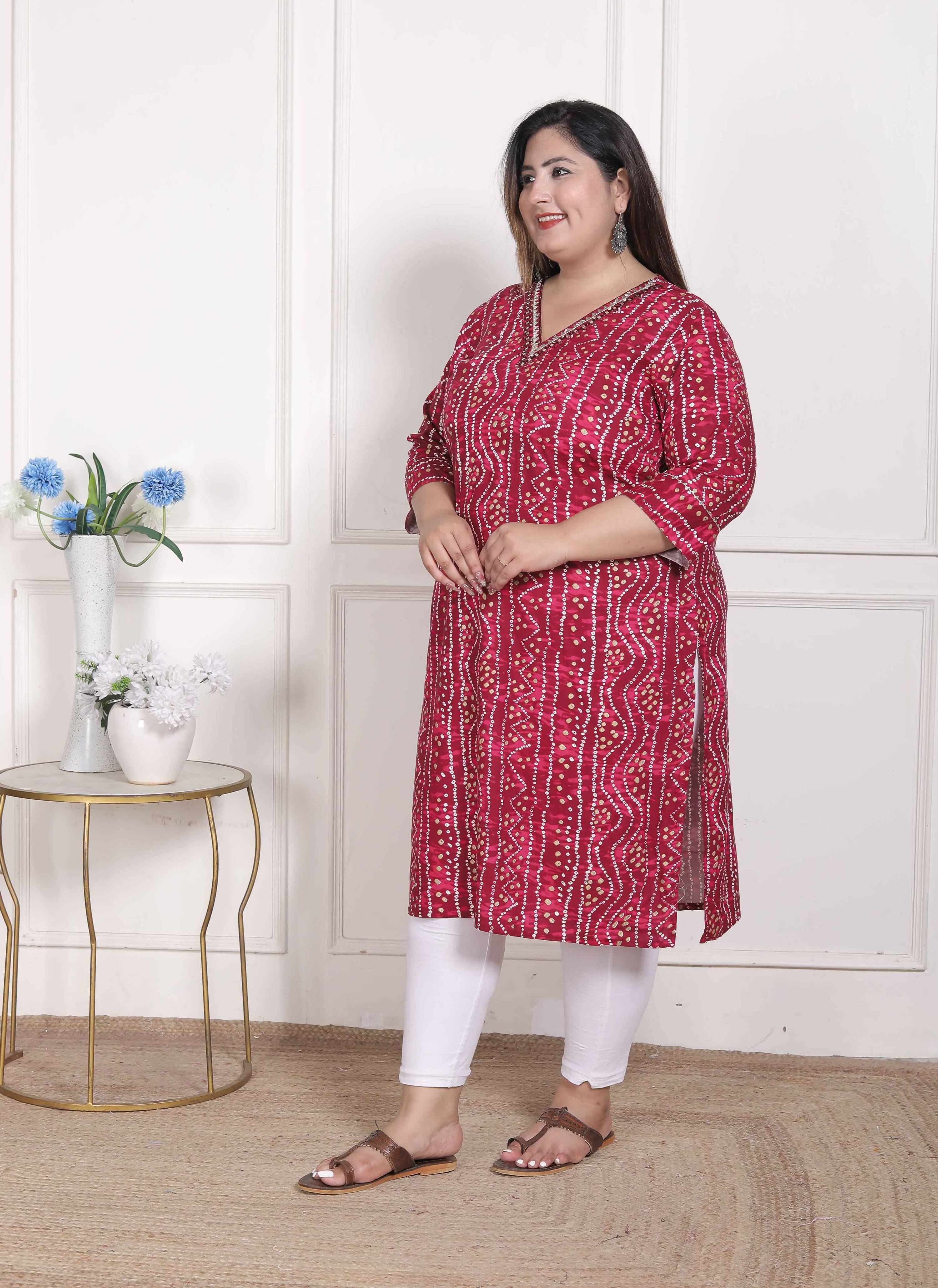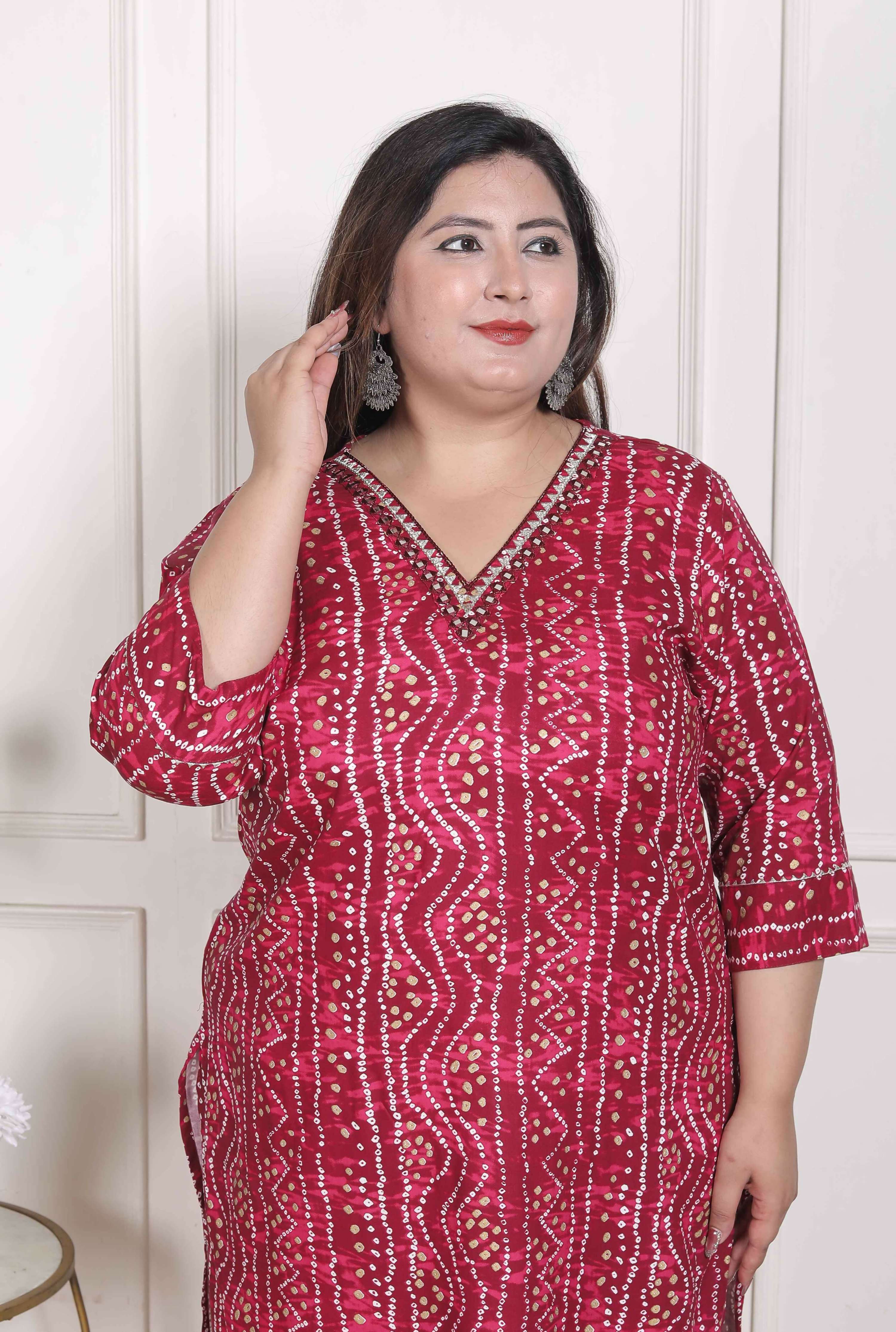Miravan Women's Plus Size Bandhej Printed Rayon Kurta MagentaAbout the product:Stylish Kurta in Rayon. Excellent modern choice for causal, occasion...