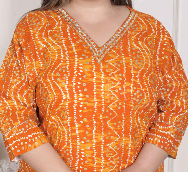 Miravan Women's Plus Size Yellow Bandhani Printed Straight Kurta