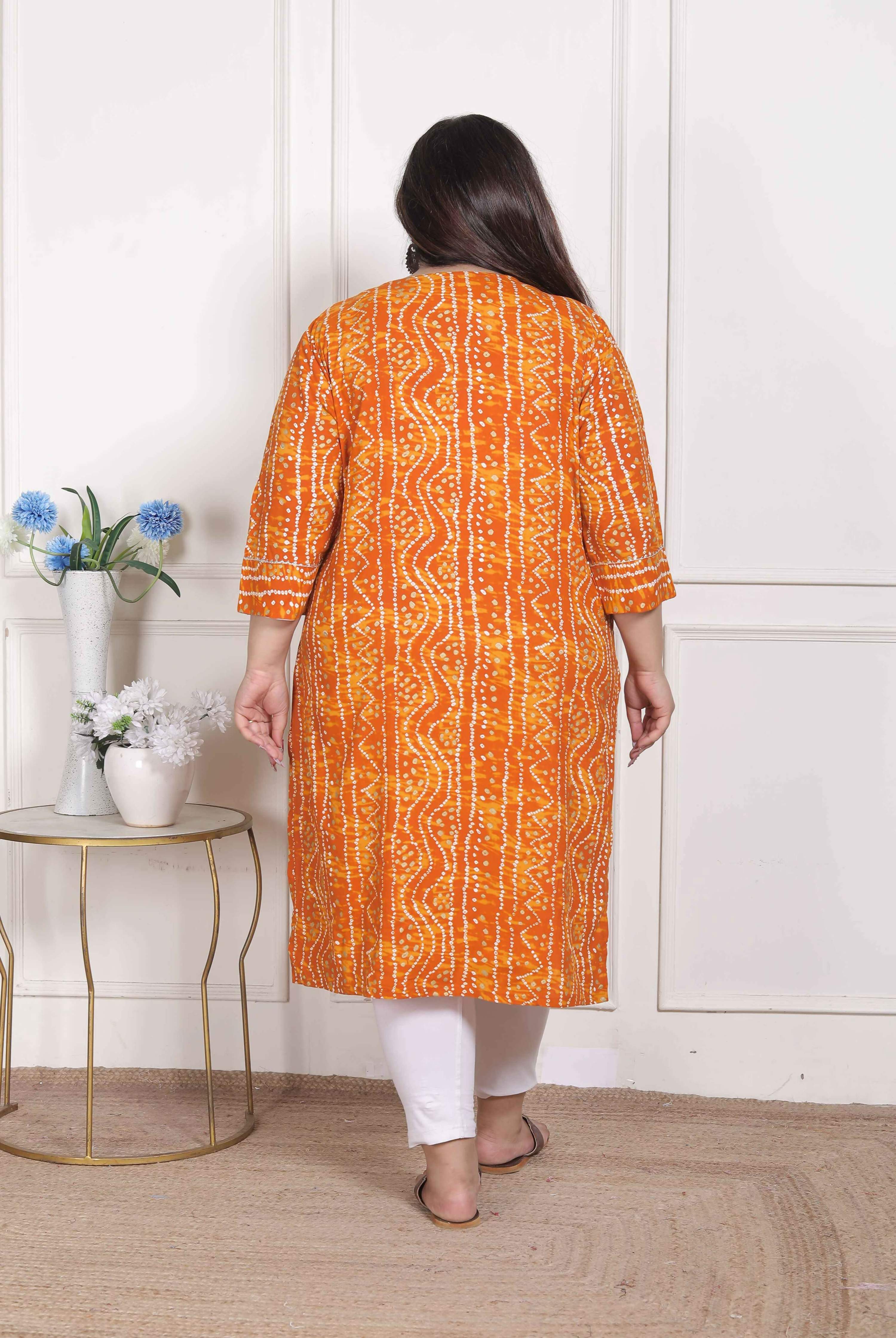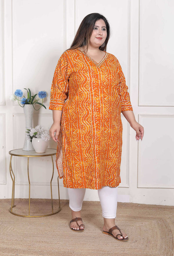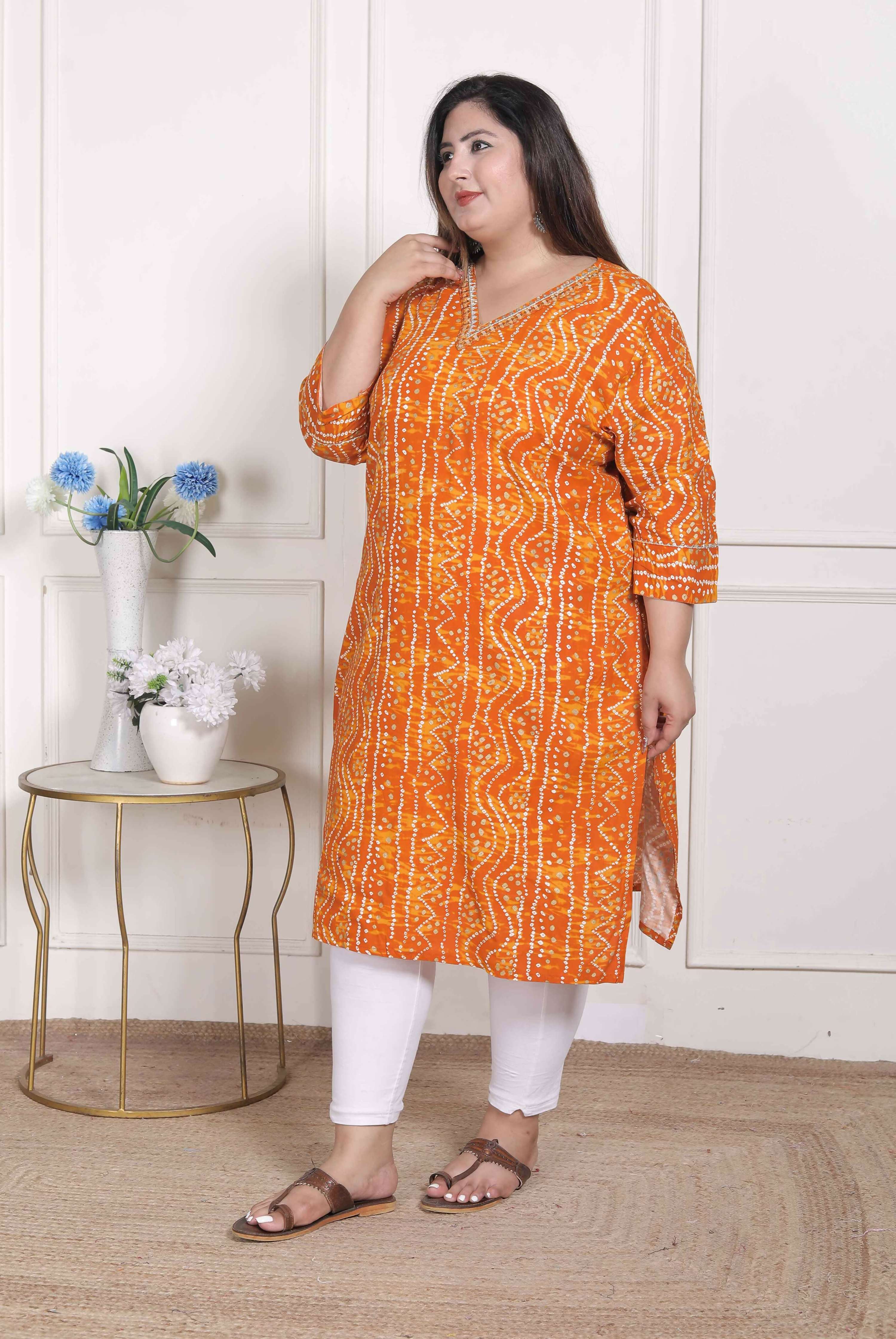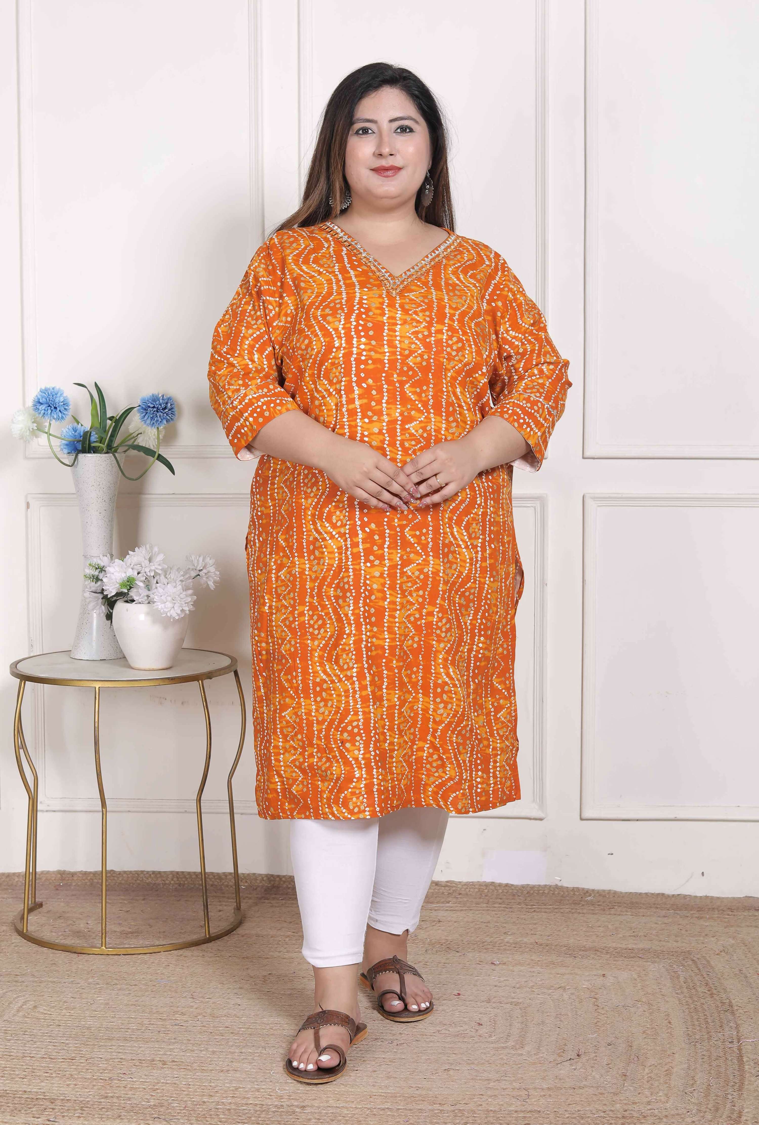 Miravan Women's Plus Size Yellow Bandhani Printed Straight KurtaAbout the product:Experience comfort in style with this Yellow Kurta from Miravan. ...