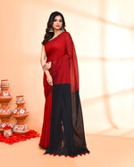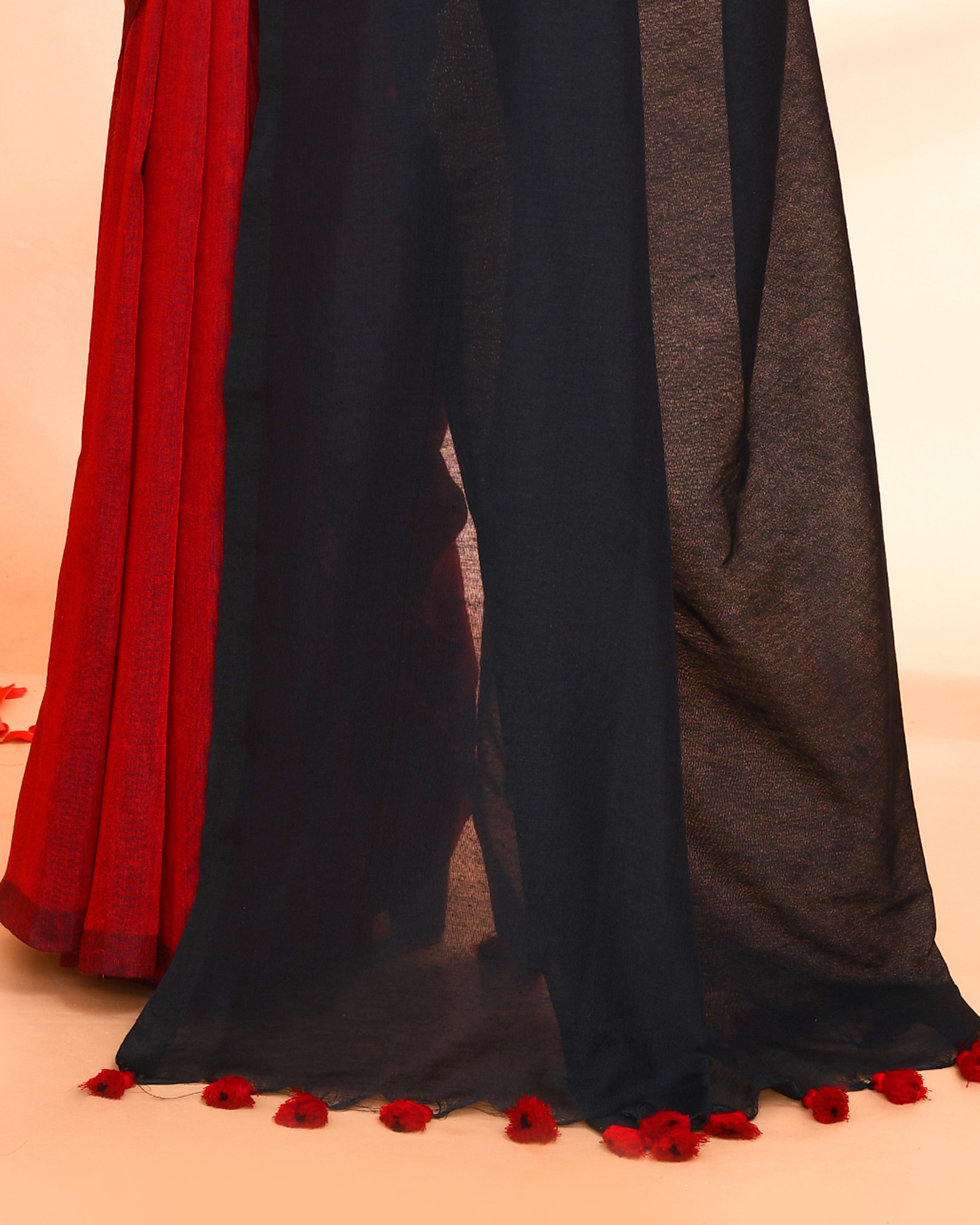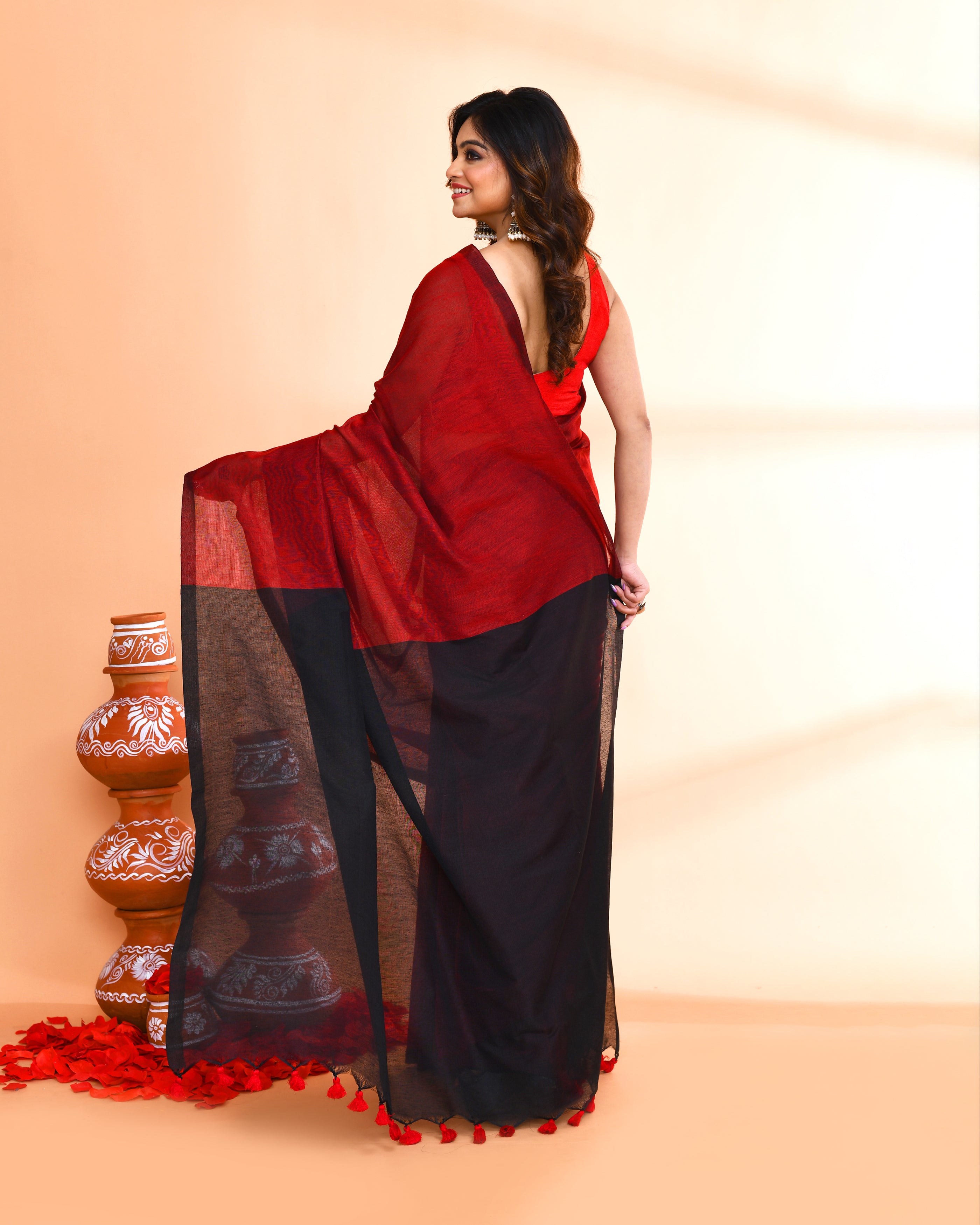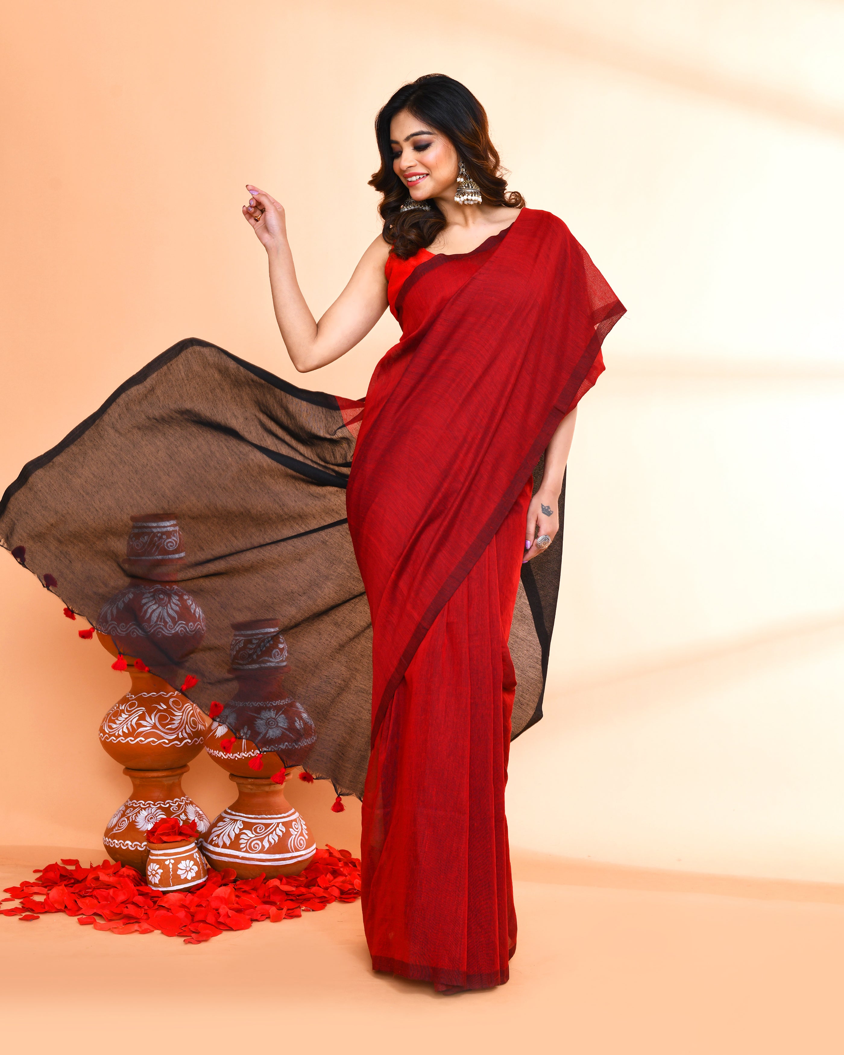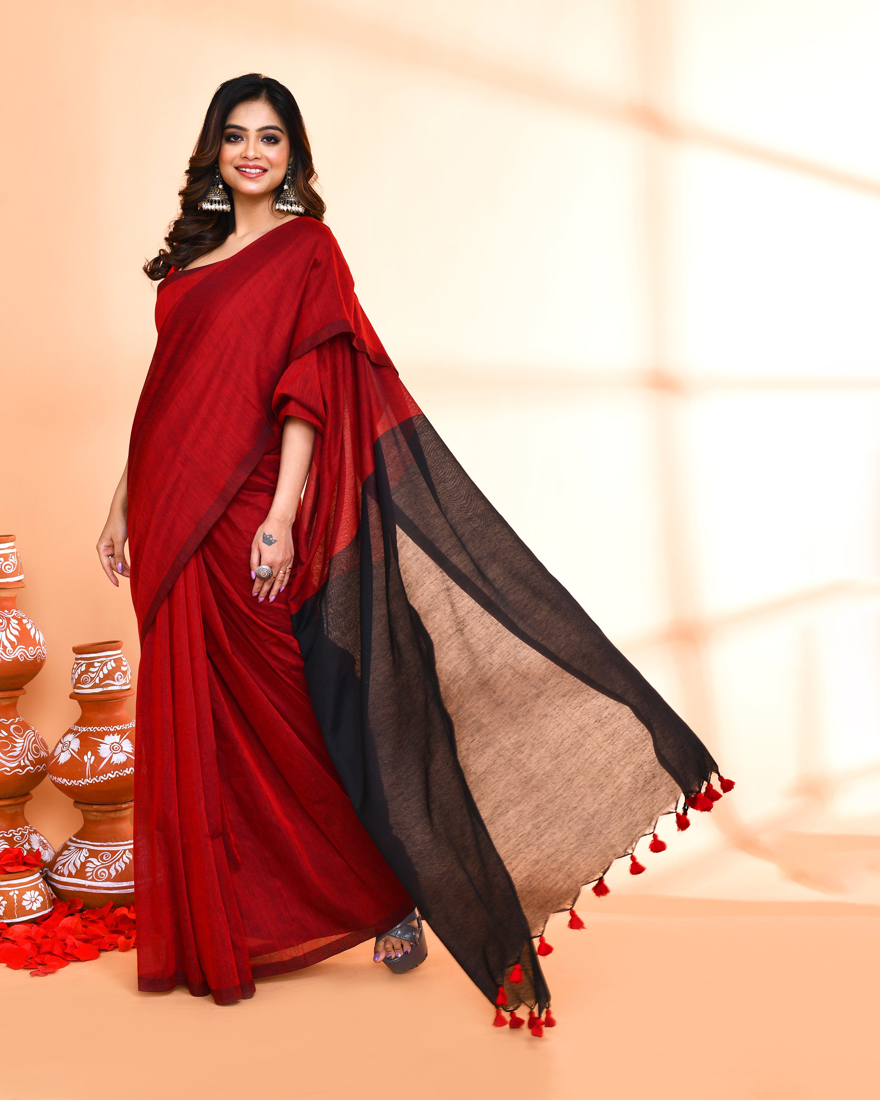 Piyari Fashion Handspun Cotton Red Handloom Saree With Blouse