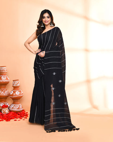 Piyari Fashion Women`s Black Hand Work Cotton Jamdani Saree With BlouseAbout the Product:A fresh and vibrant addition to your wardrobes! This saree...