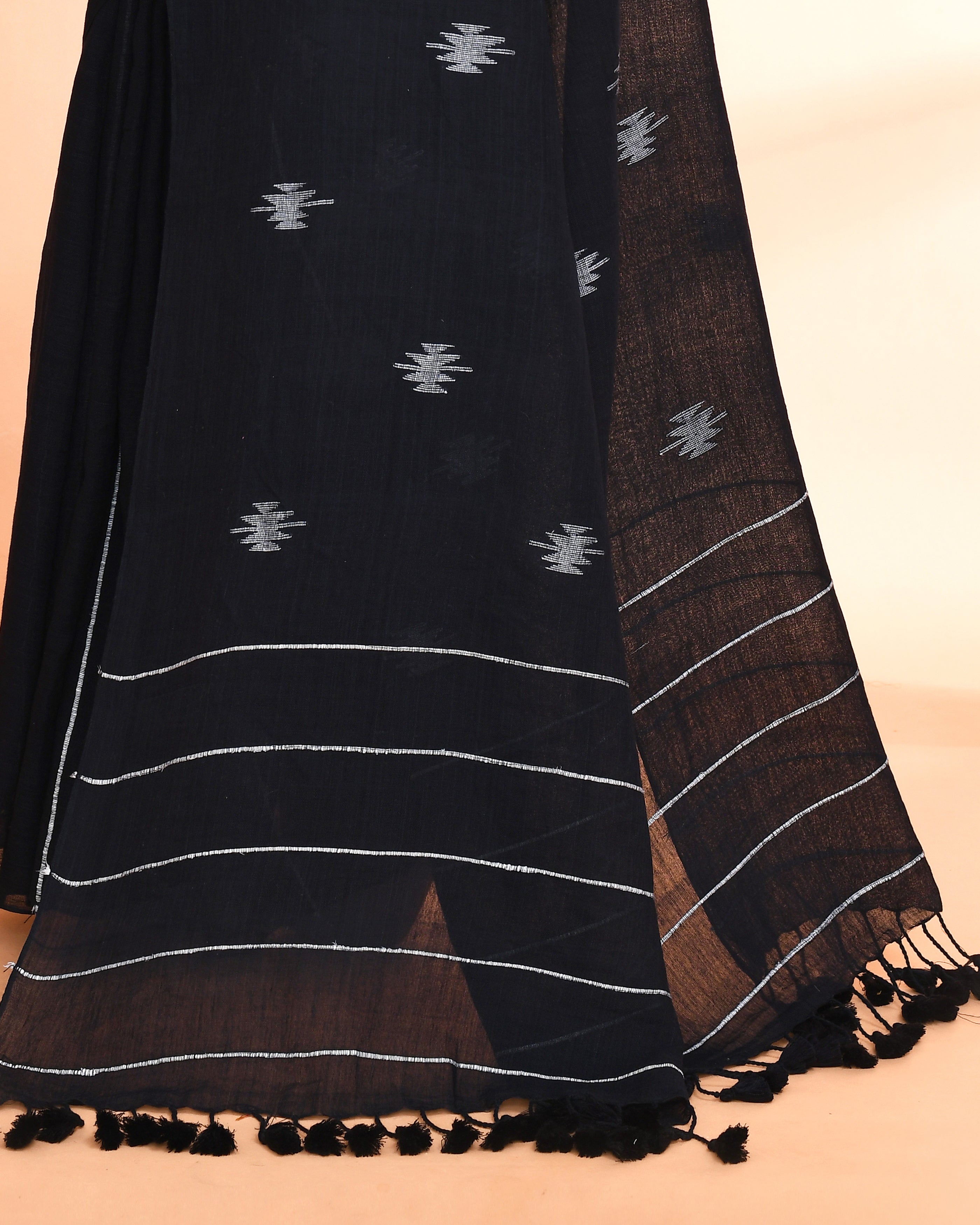 Piyari Fashion Women`s Black Hand Work Cotton Jamdani Saree With Blouse