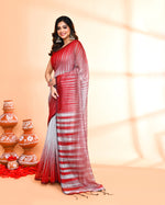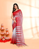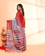 Piyari Fashion Women`s Cotton Silk Silver Handloom Saree With Blouse