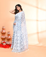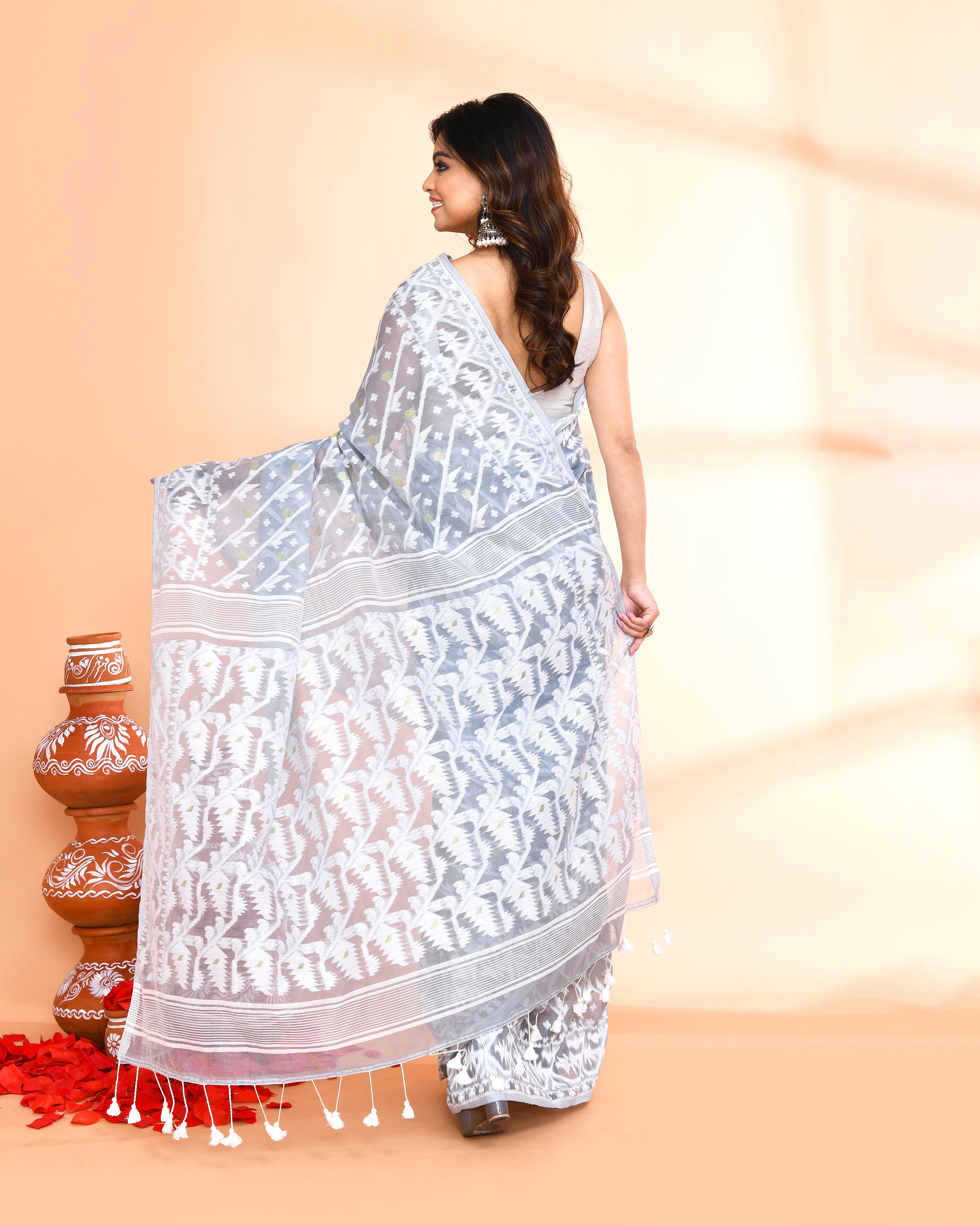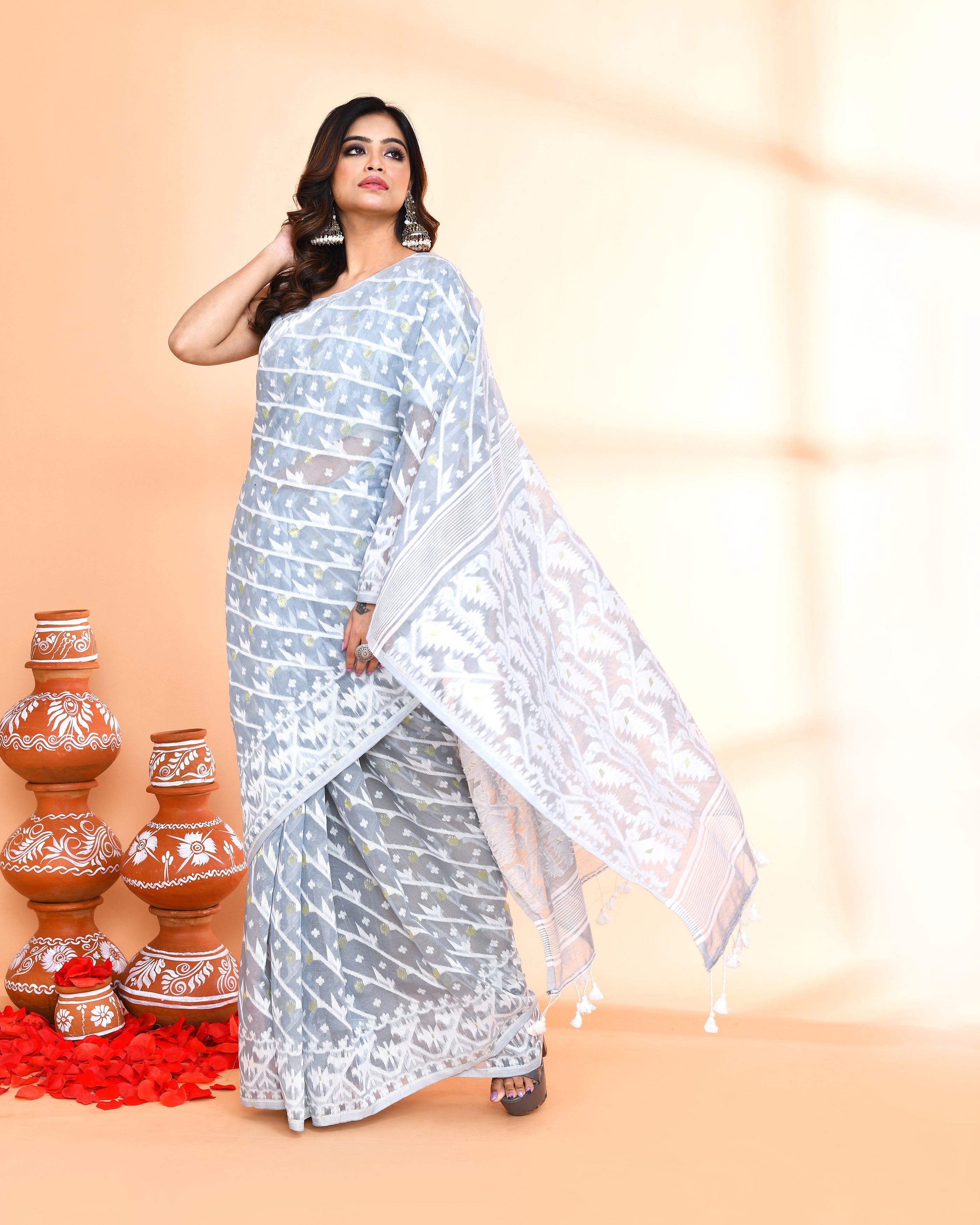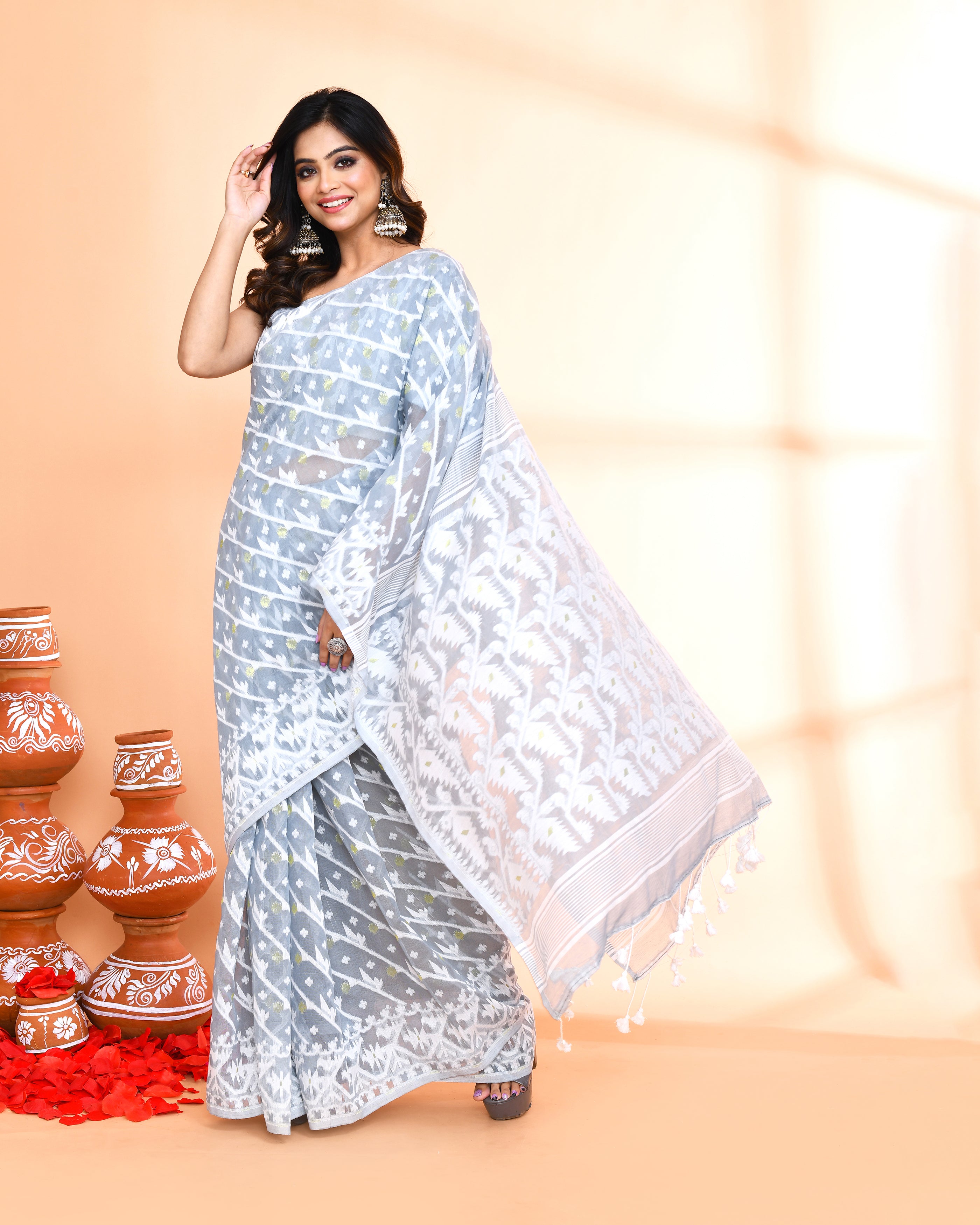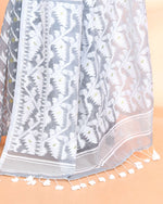Piyari Fashion Women's Pebble Grey Cotton Silk Jamdani Saree