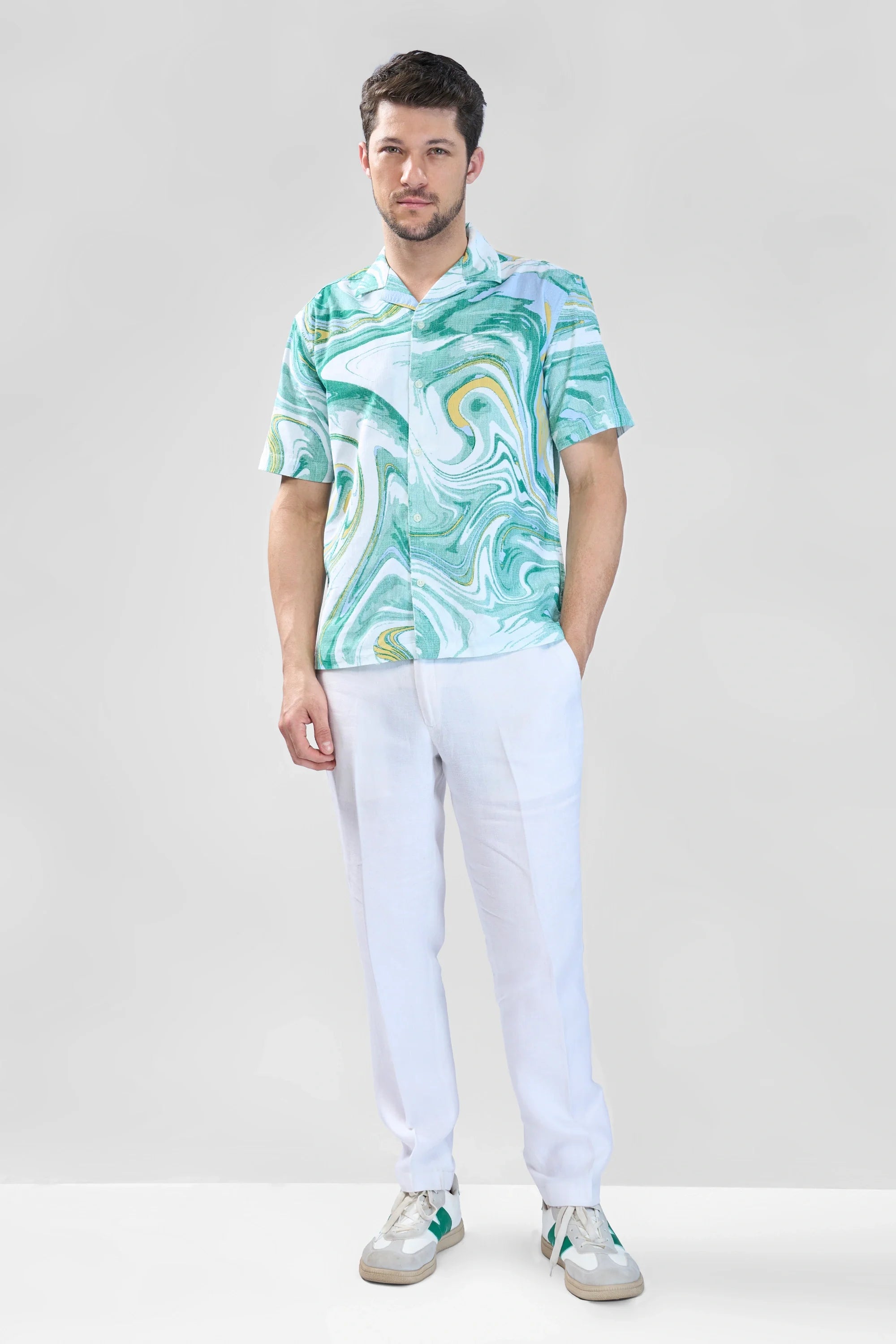 Xkind Green Fine Cord Drop Shoulder Printed Relaxed Fit ShirtProduct Details:Vibrant print adds an edgy touch. Perfect for casual outings, music fe...