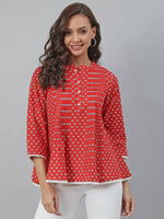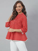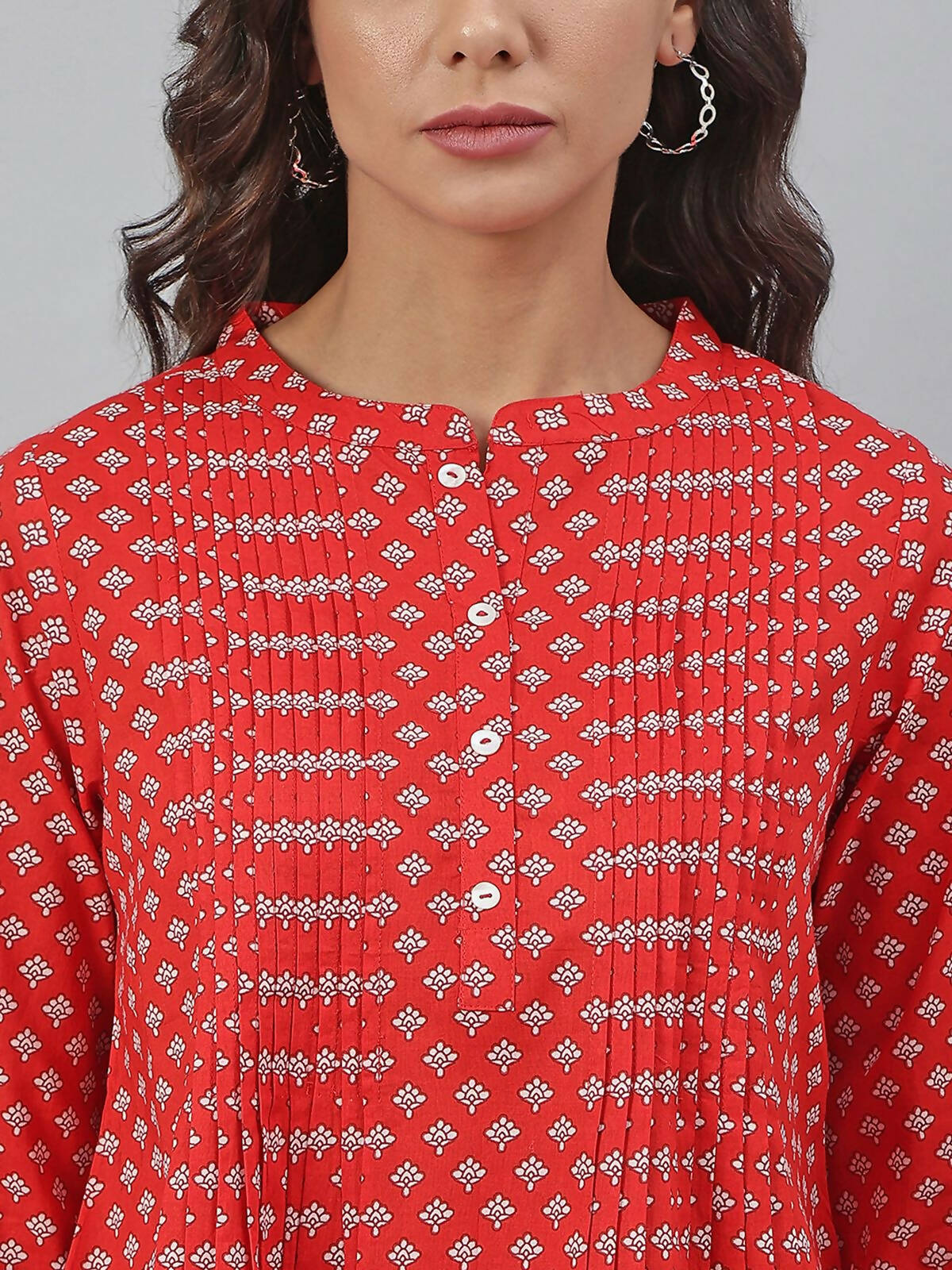 Janasya Women's Red Cotton Floral Print Flared Top Additional Information: Color: Red Fabric: Cotton Pattern: Floral Print Occasion: ...