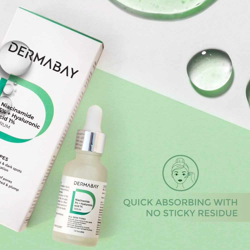 Dermabay Niacinamide 5%+ Hyaluronic acid 1% SerumAbout The Product: Loaded with niacinamide & hyaluronic acid: this potent blend of niacinamide...