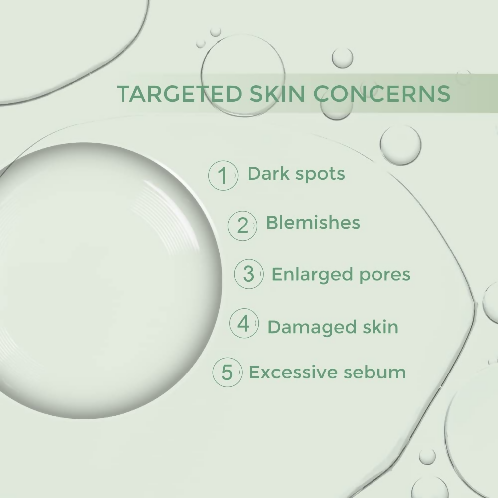 • Clearer skin with acne control: our formula helps reduce blemishes and acne marks, and controls sebum production, paving the way for a clearer, more radiant skin.