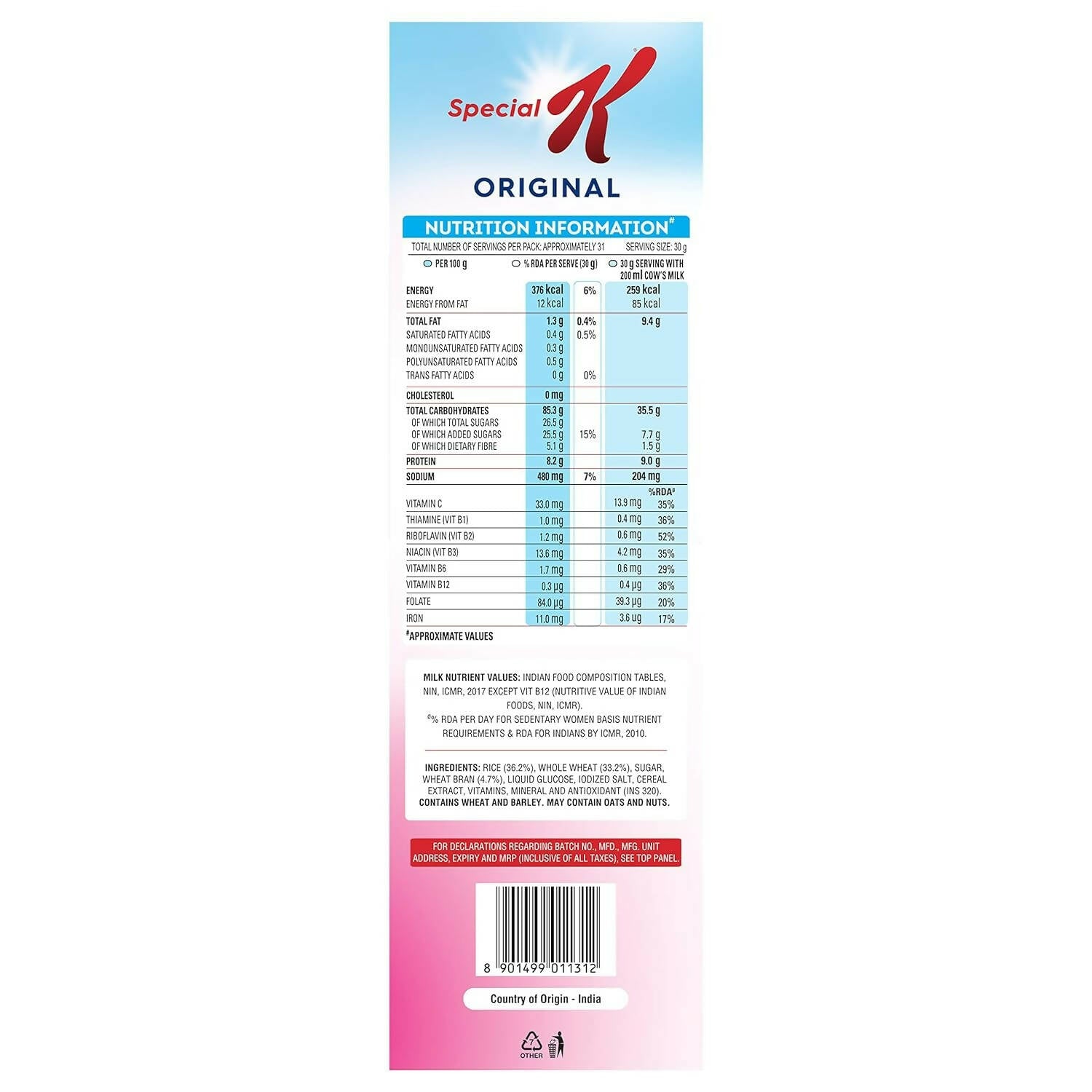 • Naturally, Low-Fat Food  Kick Start your weight management journey with Kellogg’s Special K Original which is a low-fat breakfast and take a step towards a nourishing lifestyle. Packed with Nutrients - Kellogg’s Special K Original is high in Vitamin C, Vitamin B1, B2, B3, B6, folate, and Vitamin B12.