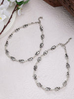 • Style Note: The NVR Women Set of 2 Silver-Plated Elephant Design Anklets offers a blend of traditional charm and contemporary style. Each anklet features a silver-plated finish adorned with elephant designs, symbolizing strength, wisdom, and good luck. Perfect for enhancing both casual and festive attire, these anklets add a touch of elegance and cultural richness to any ensemble. With their adjustable length, they ensure a comfortable fit and make a delightful addition to your jewelry collection, showcasing a timeless appeal and unique craftsmanship.