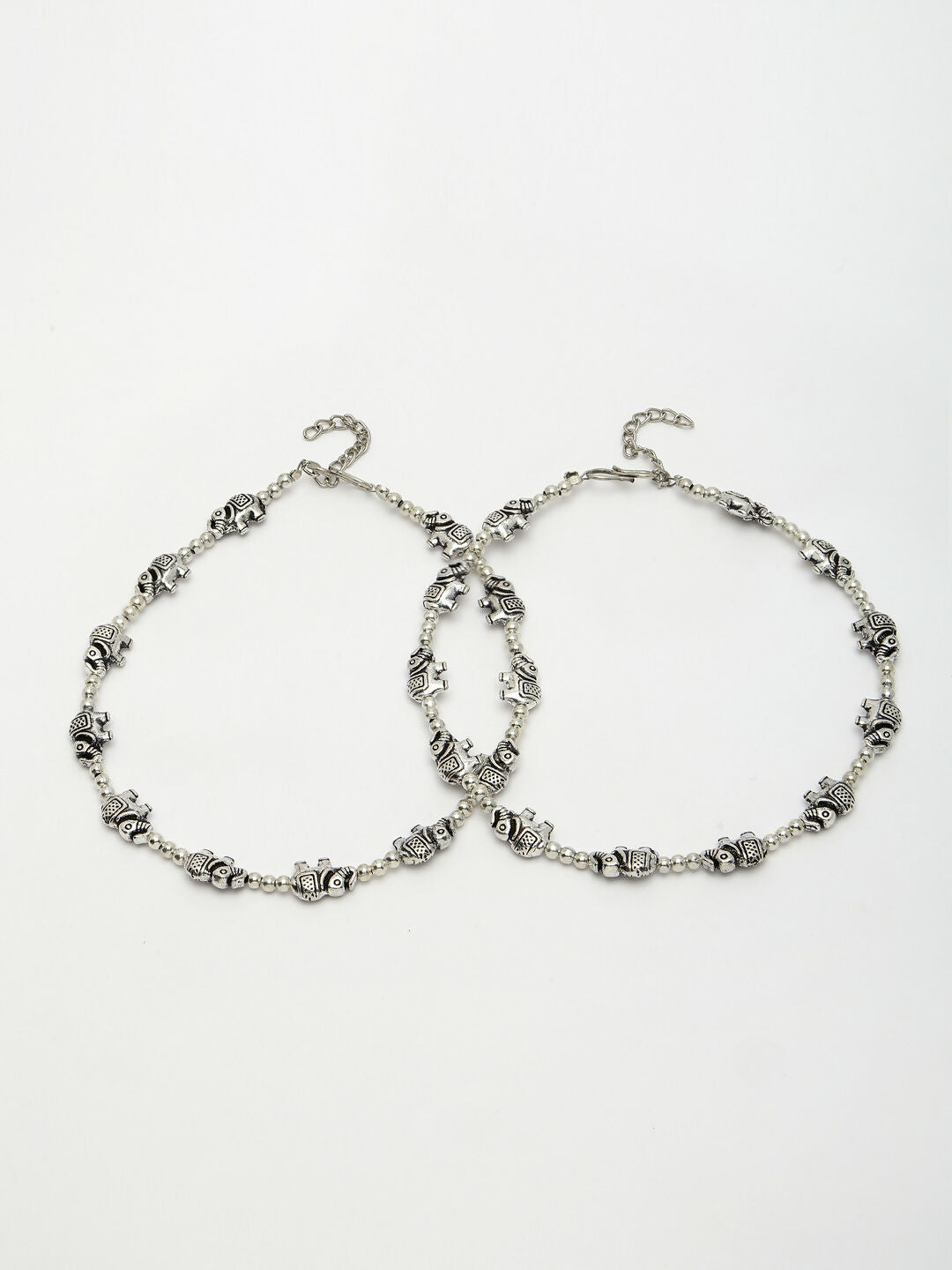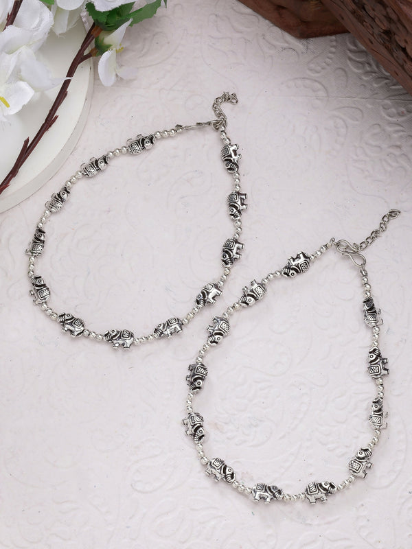 NVR Women's Set of 2 Silver-Plated Elephant Design Anklets - Distacart