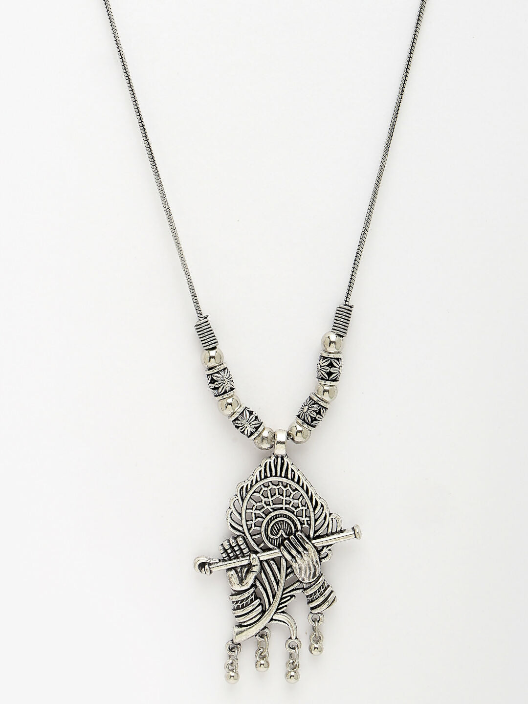 NVR Women's Silver-Toned German Silver Oxidised Pendant with Chain - Distacart