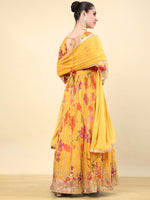 Mustard yellow embroidered Kurta with Churidar with dupatta