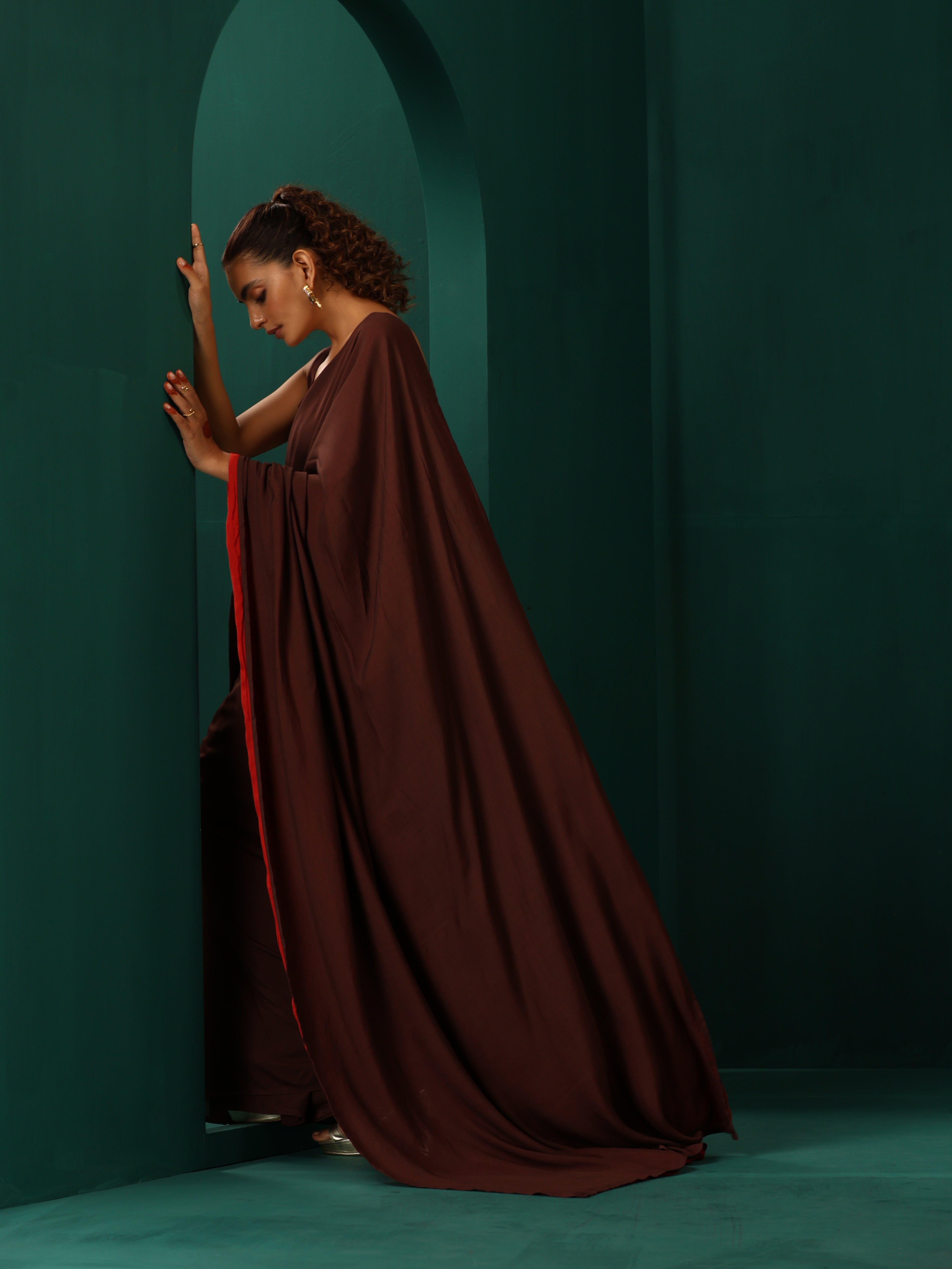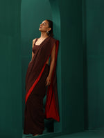 trueBrowns Cola Muslin Silk Ready to Wear SareeDescription Muslin silk color-block pre-stitched pleats saree. Style it with a blouse to complete th...