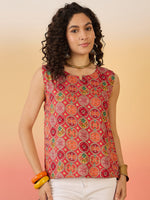 InWeave Red Round Multi Foil W/S TopPerfect for festive gatherings, casual outings, or evening wear, this versatile top pairs beautifully with pala...