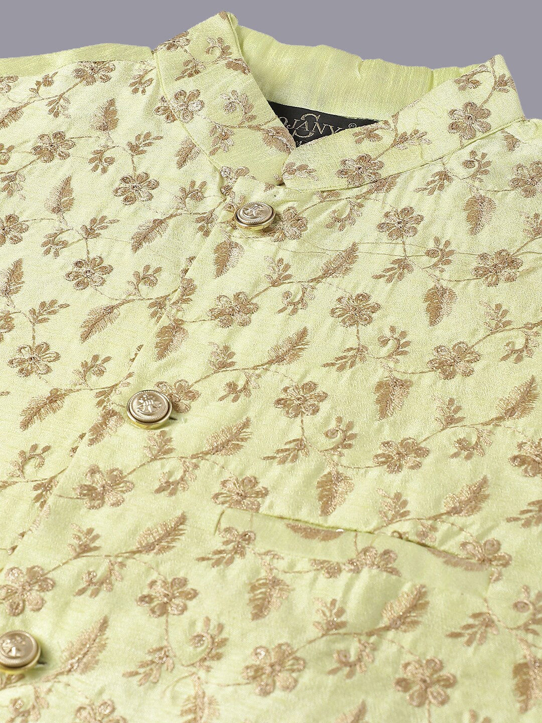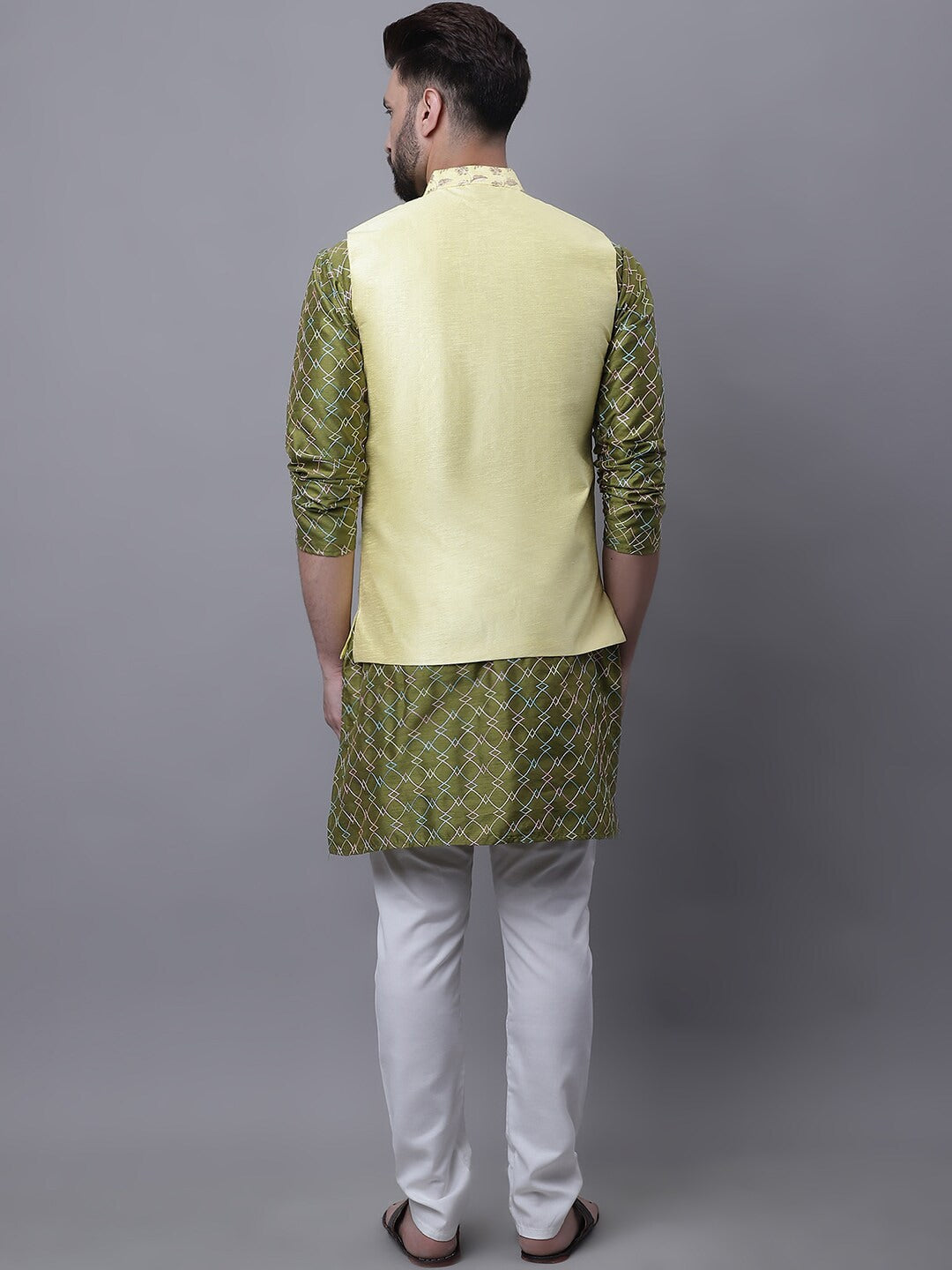 Sojanya Men Embroidered Regular Thread Work Kurta With Pyjamas & Nehru Jacket Product Details Olive green embroidered Kurta with PyjamasKurt...