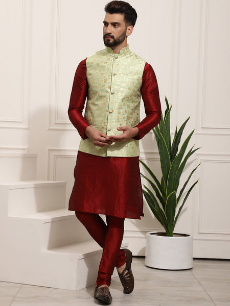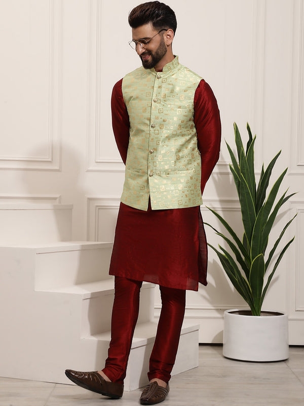 Sojanya Men Maroon Solid Kurta Set & Nehru Jacket