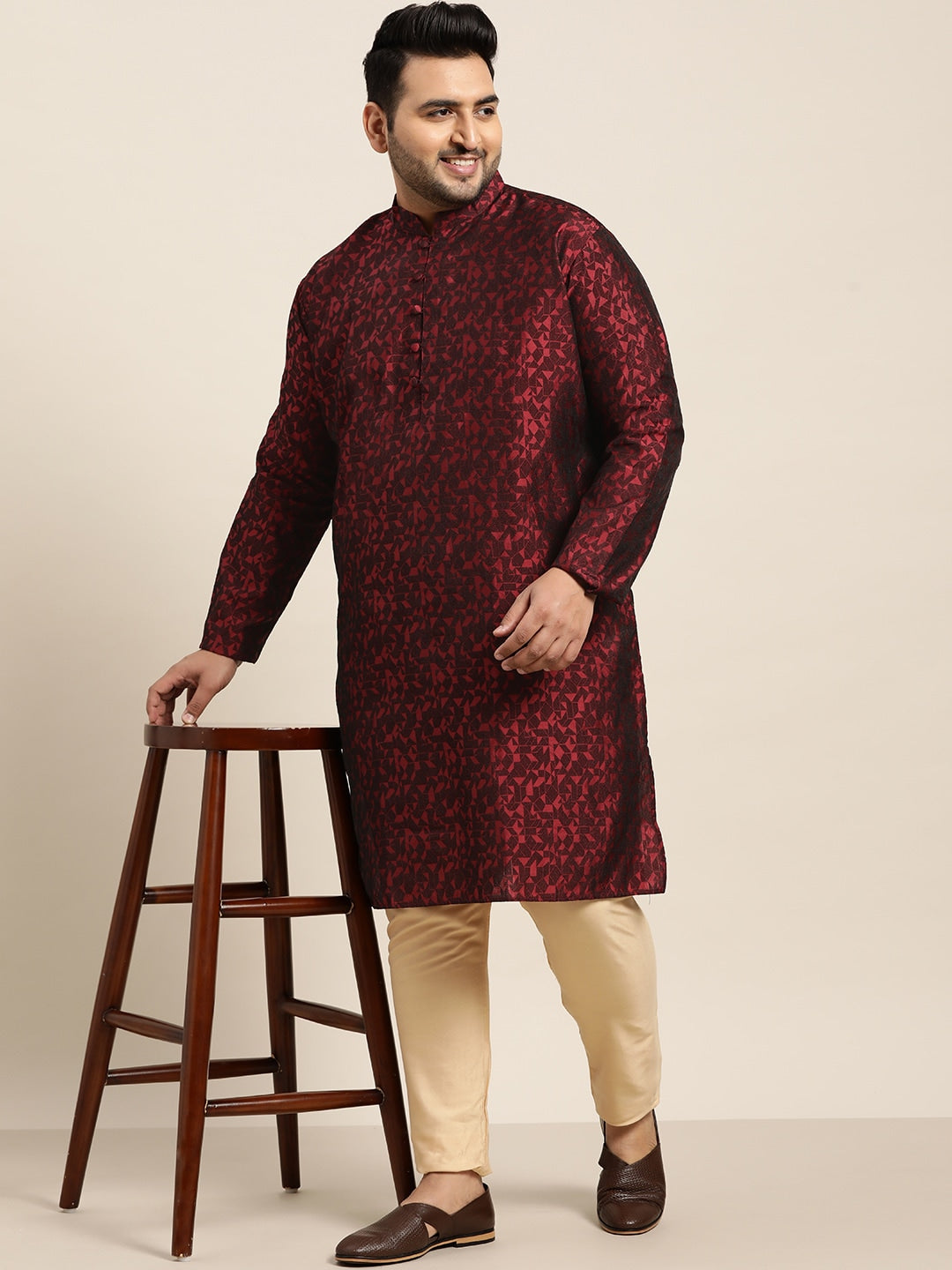 Sojanya Plus Men Plus Size Red & Black Woven Design Straight Kurta - Distacart