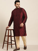 Sojanya Plus Men Plus Size Red & Black Woven Design Straight Kurta