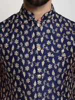 Sojanya Woven Design Mandarin Collar Kurta with Churidar & Nehru Jacket - M