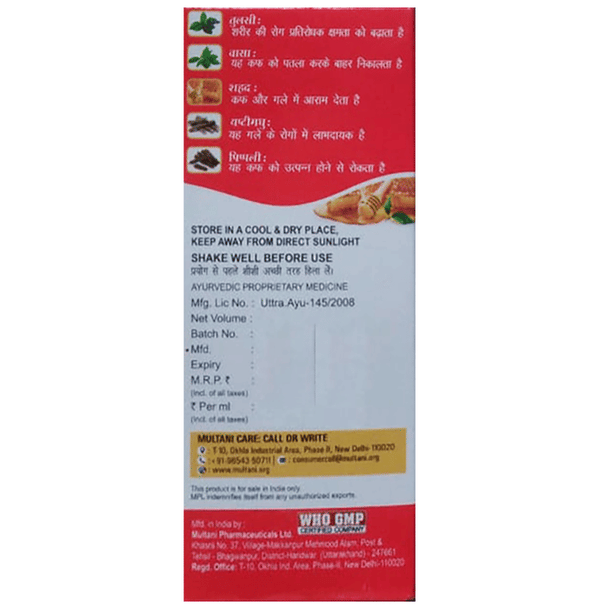 • Relief for all types of cough: It is made with a blend of ayurvedic active ingredients like tulsi and pippali. A natural product that works to relieve all types of common coughs. It acts as an enhancer against day-to-day cough