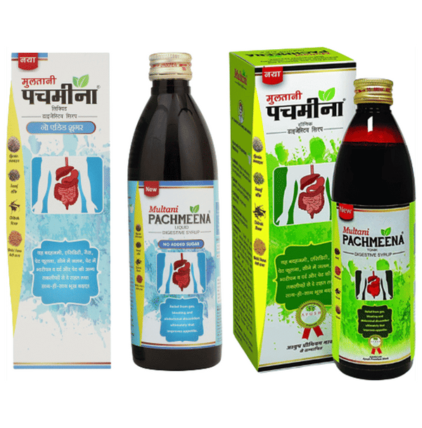 Multani Combo Pack of Pachmeena Tonik and Pachmeena Liquid No Added Sugar Multani pachmeena liquid sugar-free syrup is an ayurvedic laxative beneficial for relief from gas, bloating, abdominal discomfort and improves appetite. Pachmeena liquid is now sugar-free syrup which is safe for carbohydrate metabolism disorder.