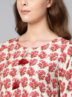 Ahalyaa Multi-color Round Neck Asymmetrical Floral Kurta with Palazzo - XS