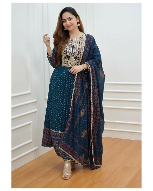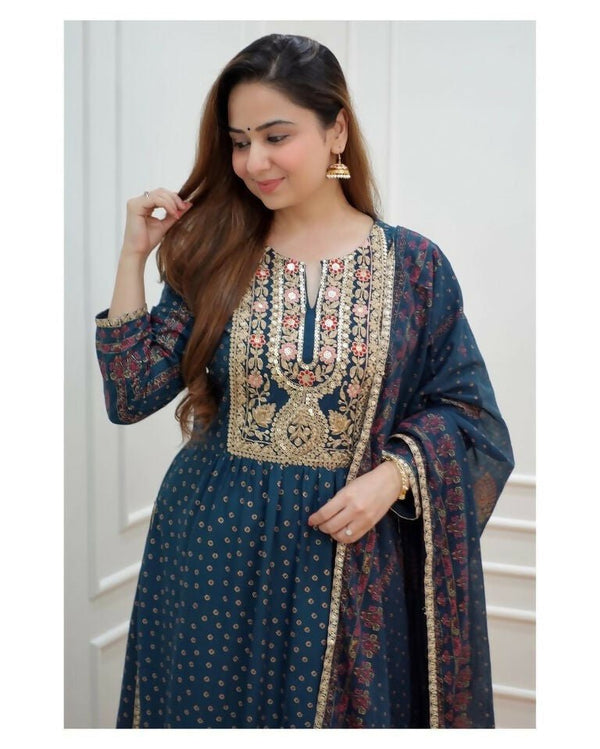 Alvano Alvano Blue A-Line Suit Set for Women's and Girls Rayon