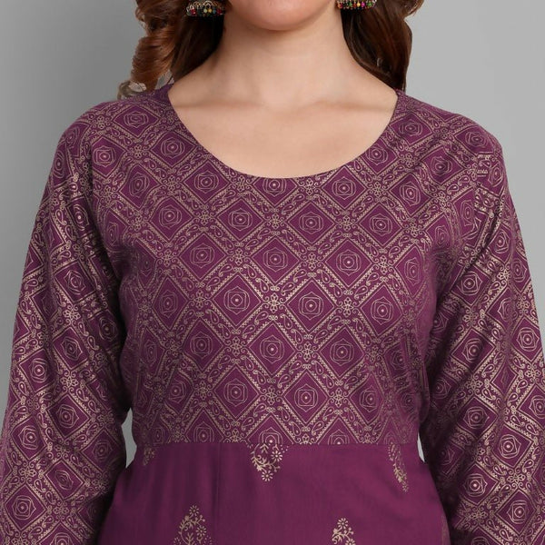 Alvano Beautiful Printed Anarkali Kurta for Women and Girls Casual wear, Partywear, Wedding (Wine) - XXL