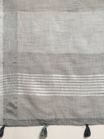 Astita Elegant Grey Woven Linen Saree with Contrast Zari Border & Tassels - Soft & Breathable Party Wear