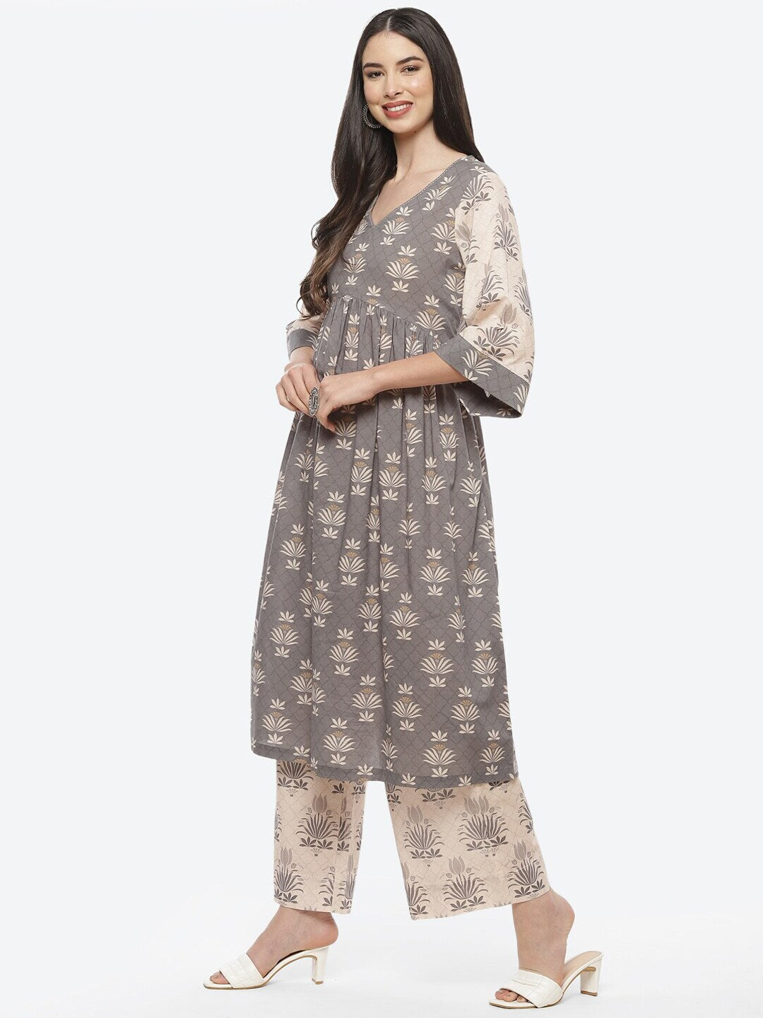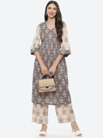 Grey & beige printed Kurta with Palazzos