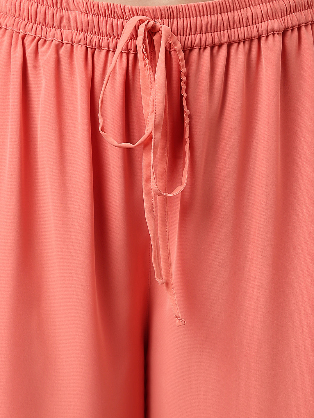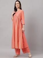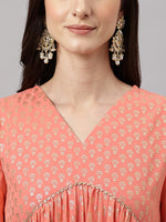 Janasya Women's Peach Georgette Foil Printed Gathered Festive Kurta Set Color: Peach Fabric: Georgette Pattern: Foil Printed Occasion: Fest...