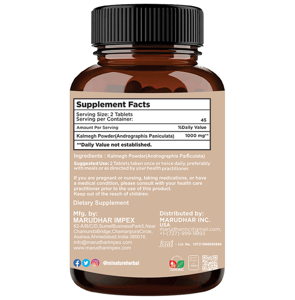 Minature Kalmegh Tablet is a tablet that may support skin cleansing and detoxification. It may support digestive health. Moreover, it may have anti-inflammatory properties.