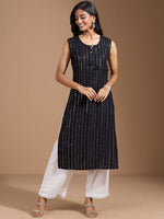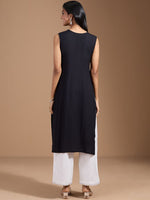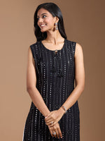 Ode by House of Pataudi Women Thread Work Kurta Product Details Colour: black Checked woven design V-neck Sleeveless, no sleeves A-li...