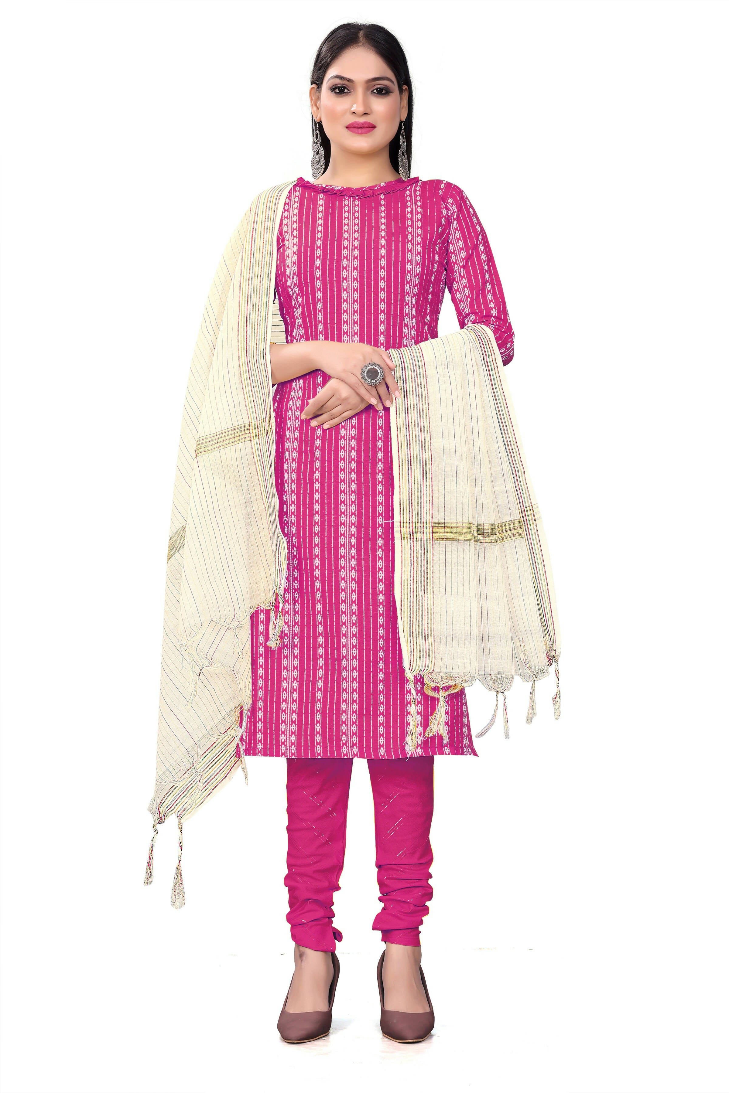 Pink Cotton Jacquard Woven Unstitched Dress Material - AmaraFlaunt a new ethnic look with this dress material. Cotton suit is beautifully adorned w...