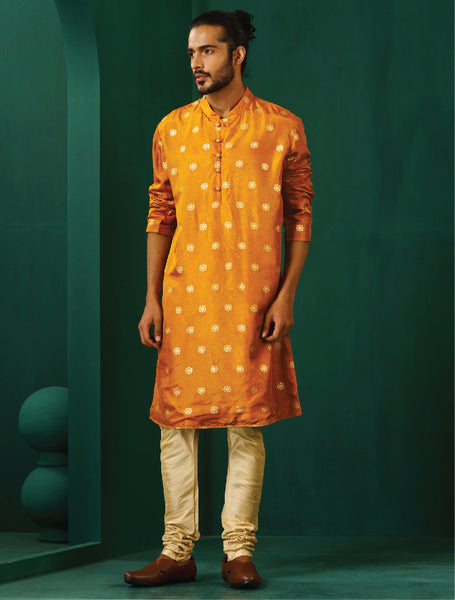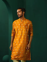 trueBrowns Men's Mustard Geometric Floral Viscose Silk Long Kurta - Distacart