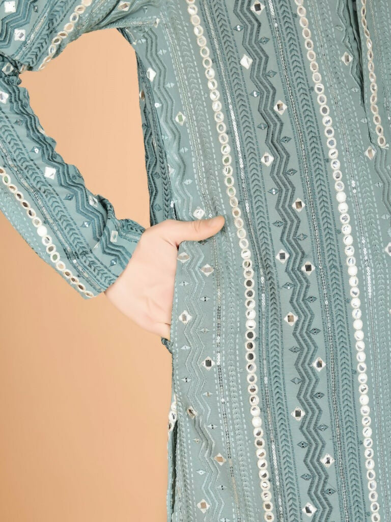 Vastranavya Pista Exclusive Festival Wear Pure Viscose Rayon Sequence & Foil Mirror Heavy Embroidered Work Kurta