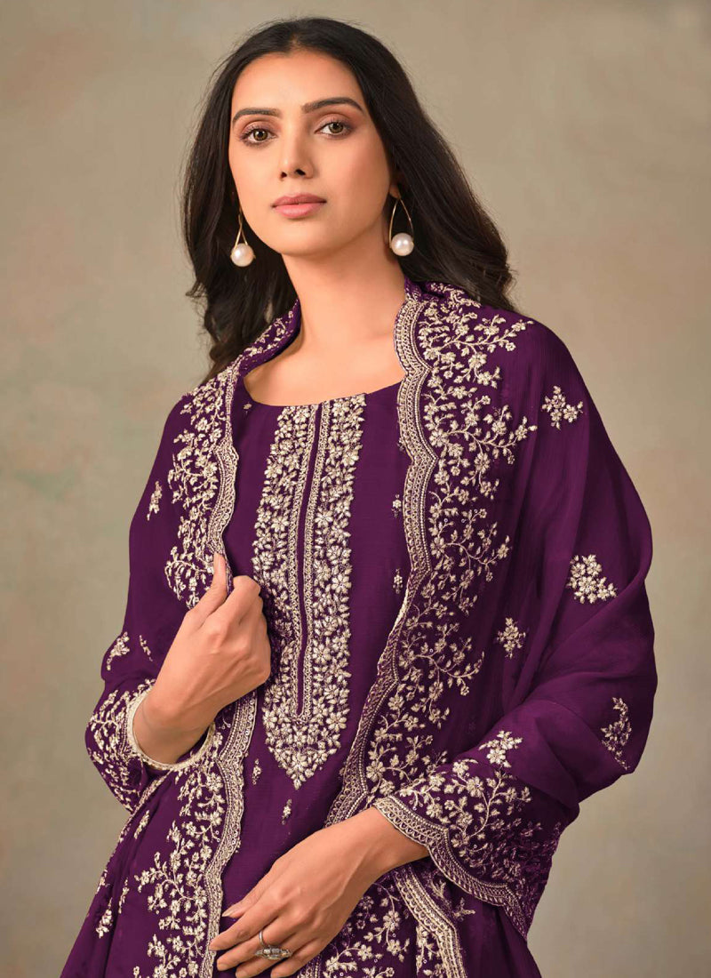 Vegaa Fashion Violet Organza Embroidery Work Designer Salwar Suit