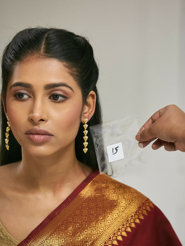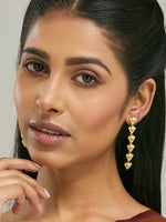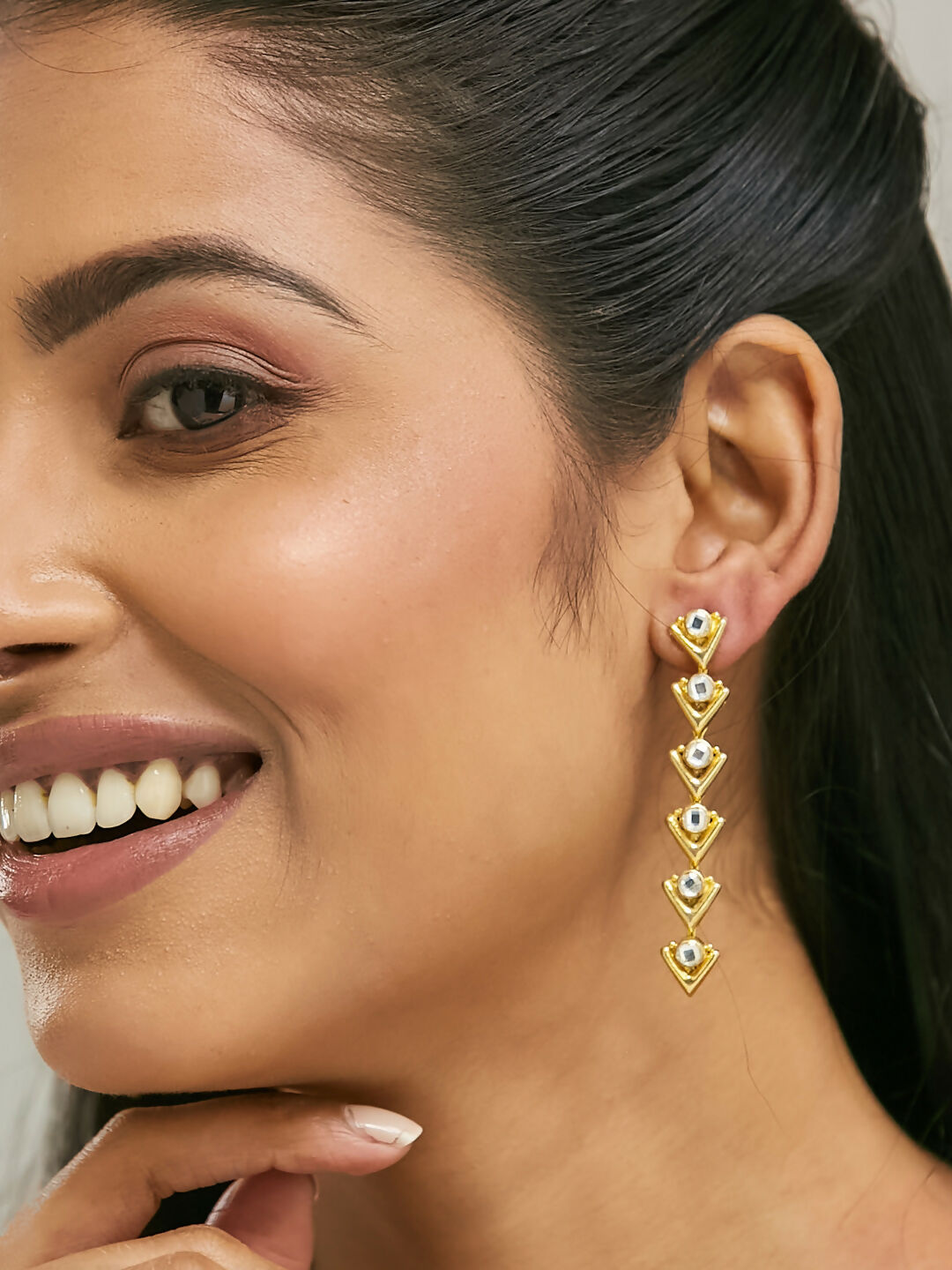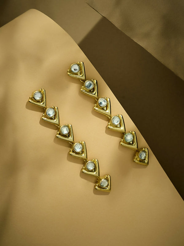 Nuyug 18K Gold-Plated Crystal Stone Studded Triangular Drop Sleek Earrings