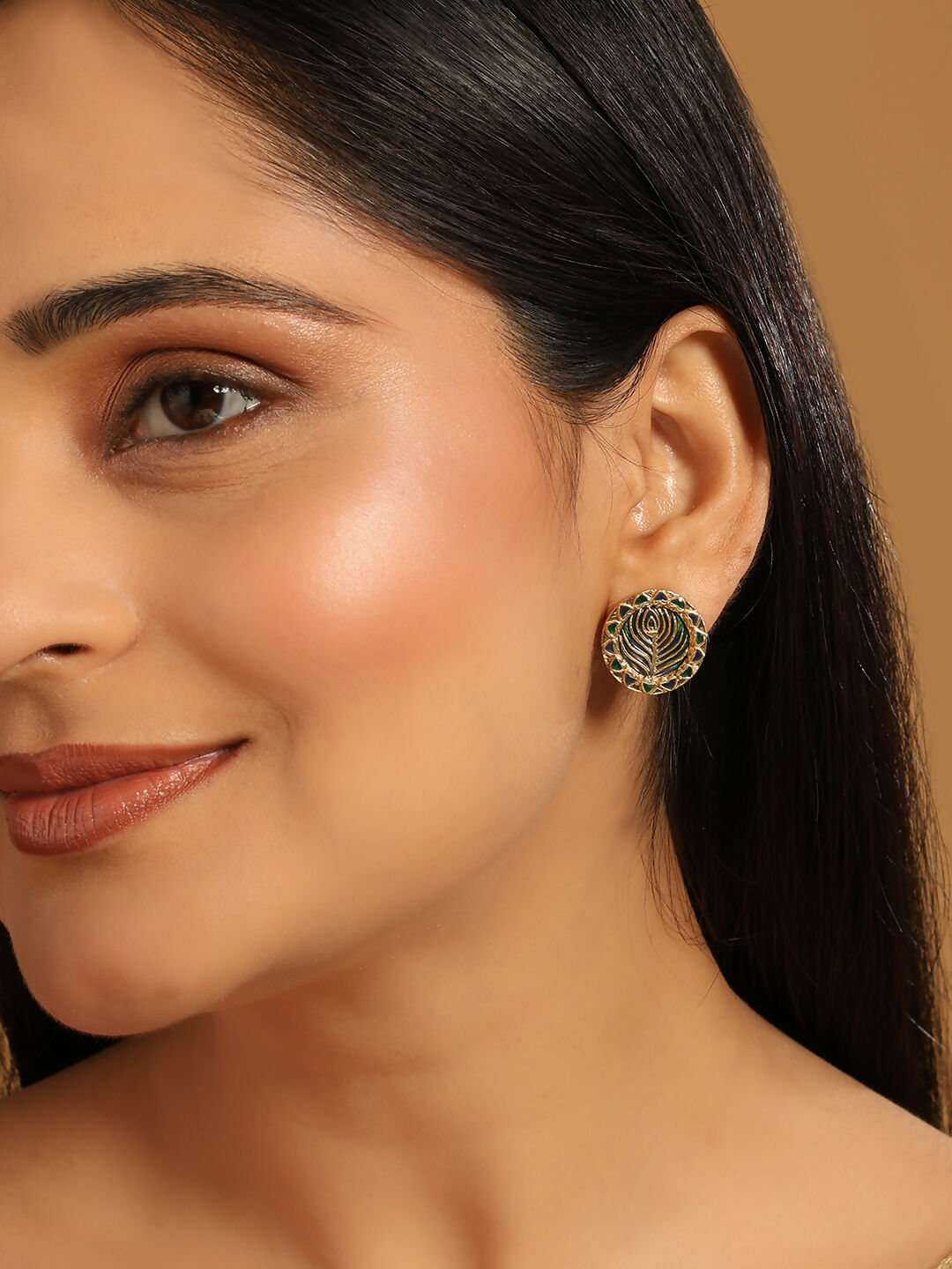 Nuyug 22K Gold Plated Contemporary Round Shaped Enamel Studs