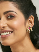 Nuyug 22K Gold-Plated Elegant Kundan & Ruby Stone Studded & Beaded Studs