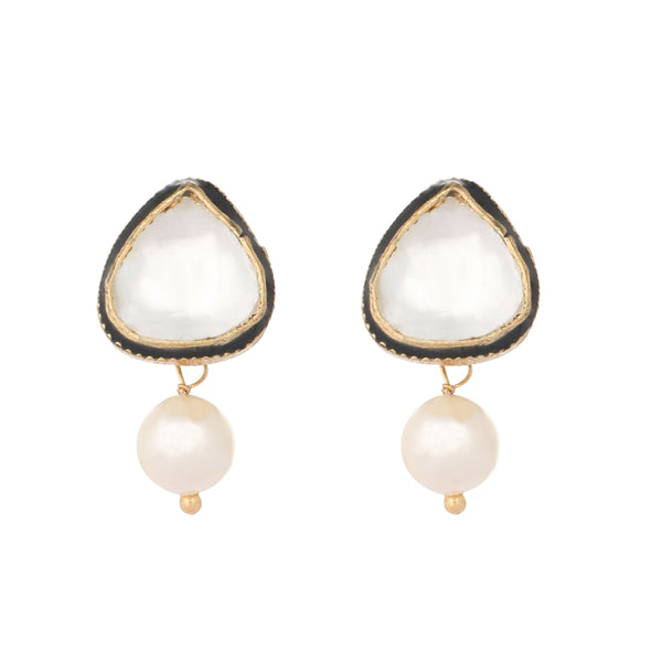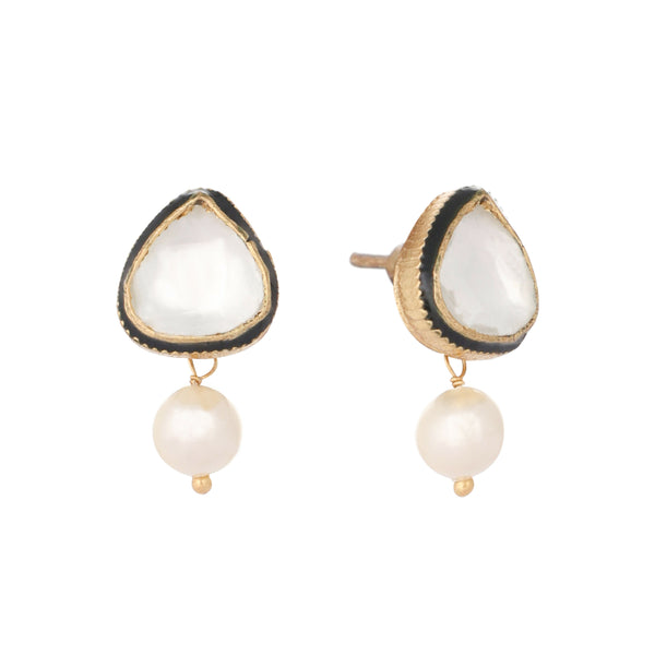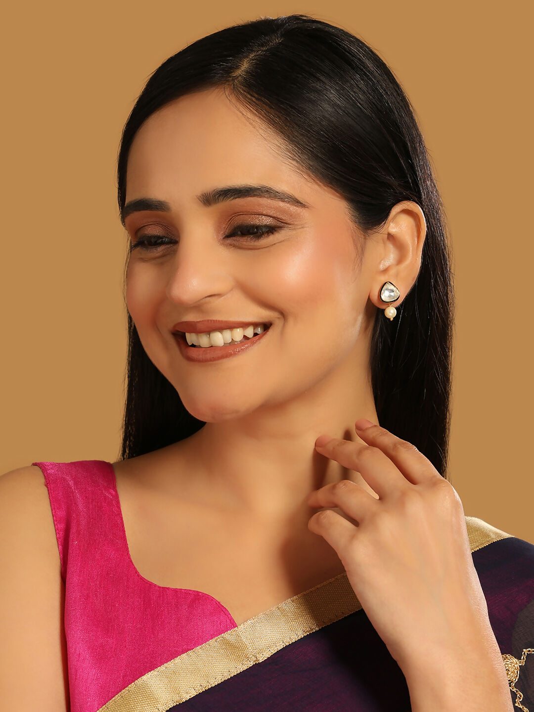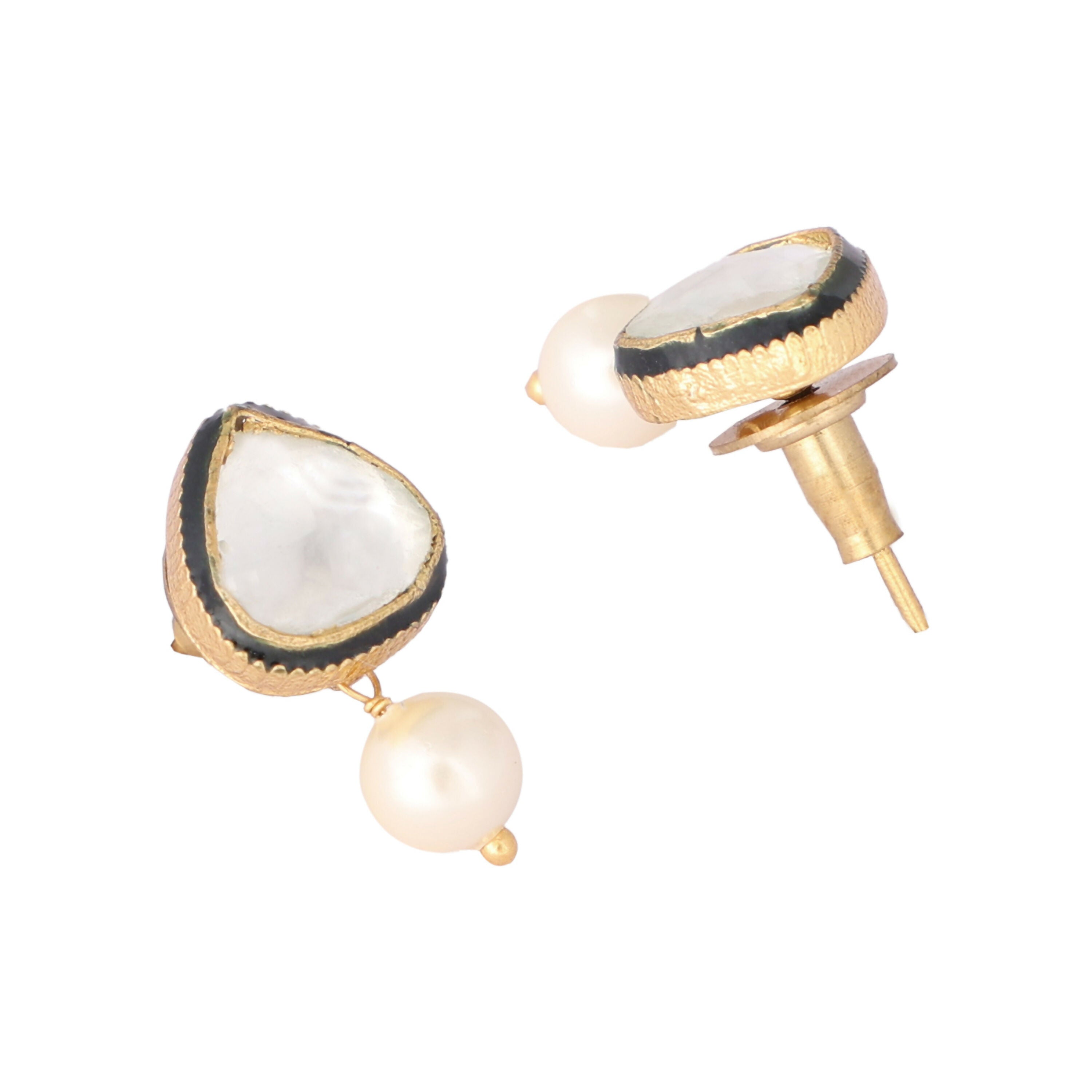 Nuyug 22K Gold Plated Kundan Stone Ethnic Mini Pearl Drop Studs