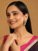 Nuyug 22K Gold Plated Ruby Stone Studded Contemporary Petal Shaped Pearl Drop Stud EarringsAbout the product:22k gold-plated paisley earrings adorn...