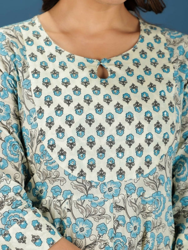 Aramya Anarkali Soft Cotton Floral Print Women's Kurta - Off White