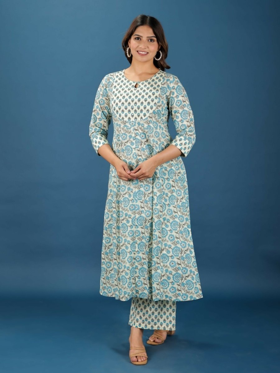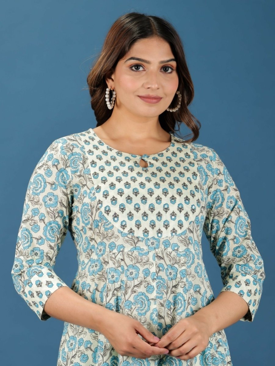 Aramya Anarkali Soft Cotton Floral Print Women's Kurta - Off WhiteElevate your style with our uniquely designed kurta, perfect for daily wear or ca...