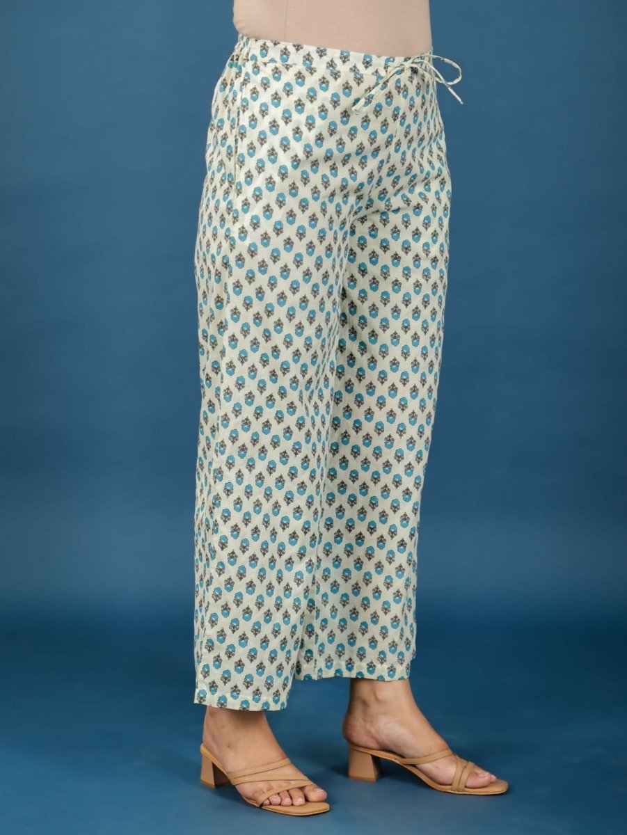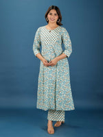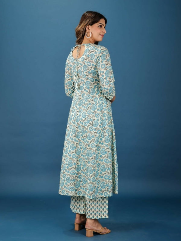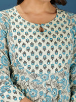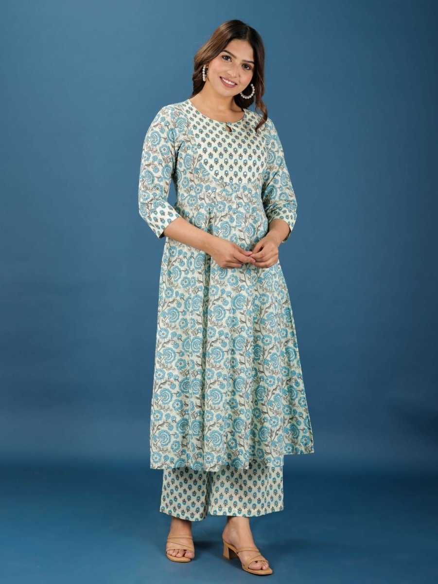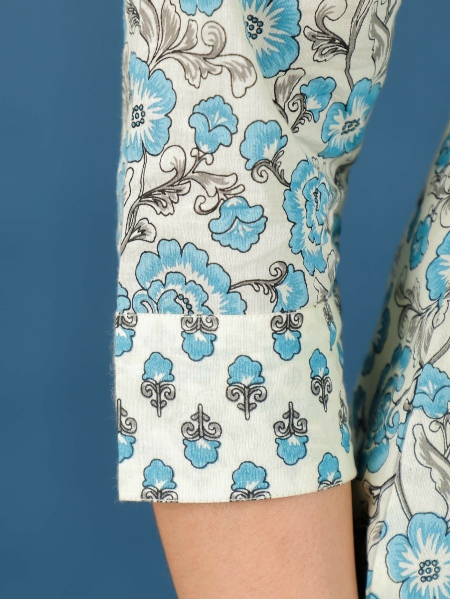 Aramya Anarkali Soft Cotton Floral Print Women's Kurta Set - Off White