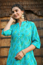 Aramya Straight Soft Cotton Bandhani Print Women's Kurta - Blue