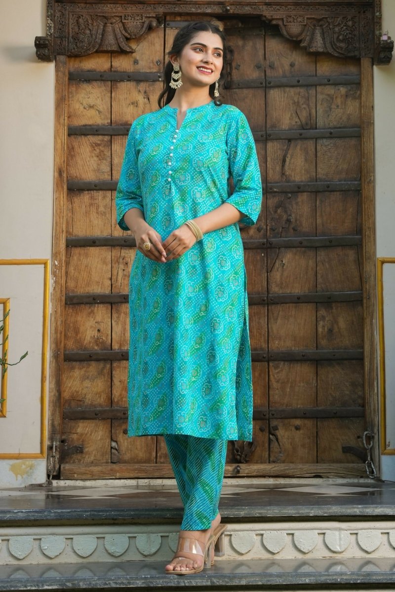 Aramya Straight Soft Cotton Bandhani Print Women's Kurta - BlueElevate your style with our uniquely designed kurta, perfect for daily wear or casua...