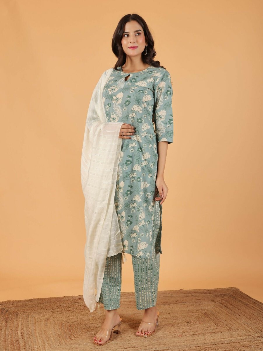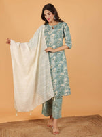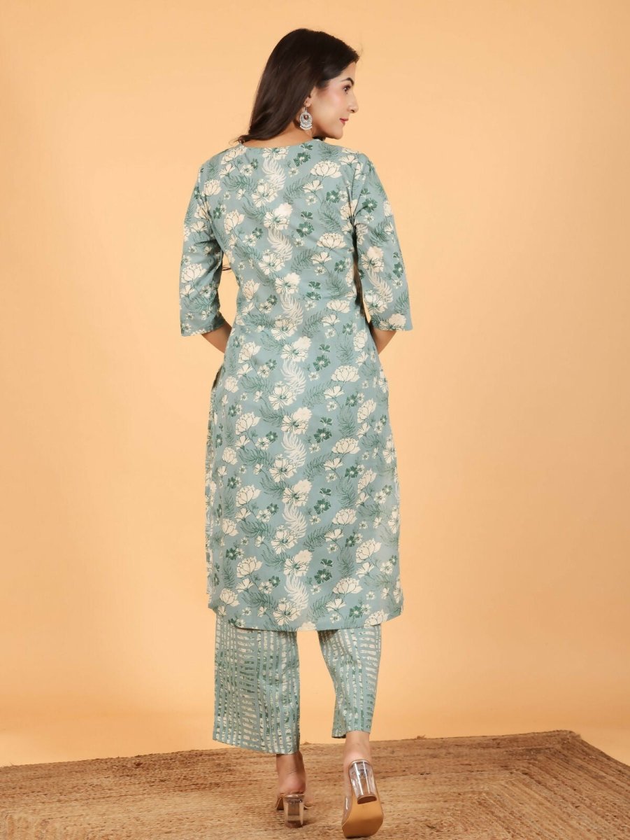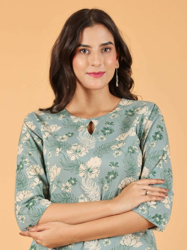 Aramya Straight Soft Cotton Floral Print Women's Kurta - GreenElevate your style with our uniquely designed kurta, perfect for daily wear or casual...